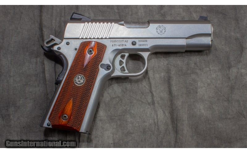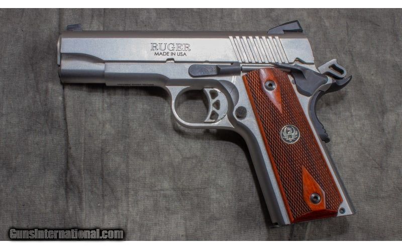 Description: This stainless steel Ruger SR1911 chambered in .45 Auto is a commander variant with a 4" barrel. The firearm is in like new condition with fixed sights and comes with the original box, and 3 magazines. .45 Auto SOLD Chambers: .45 Auto Metal Condition: Excellent Wood Condition: Excellent Bore Condition: Excellent Barrels: 4 Weight: 2.4lbs Item Location: Concord, NC |