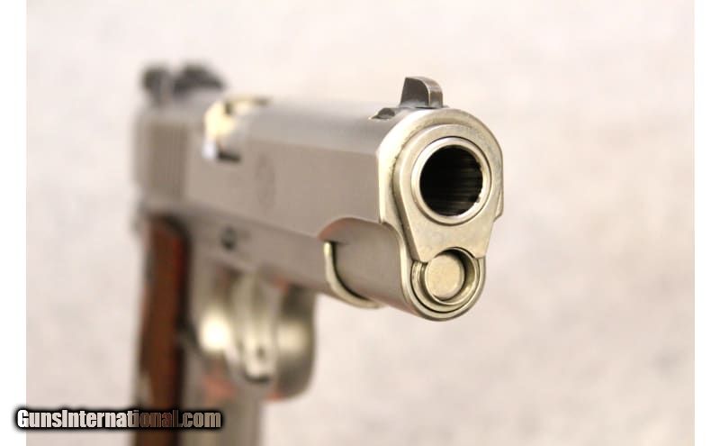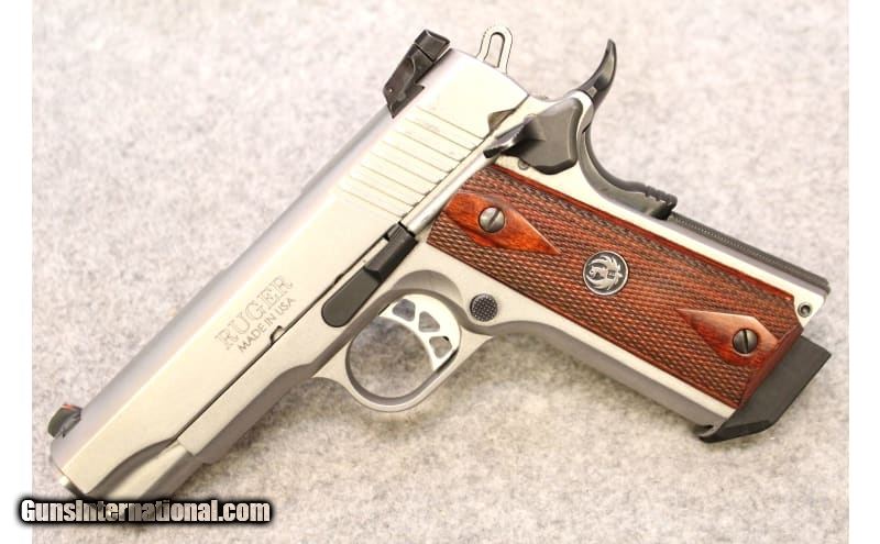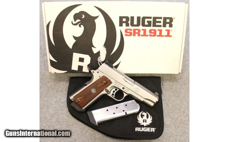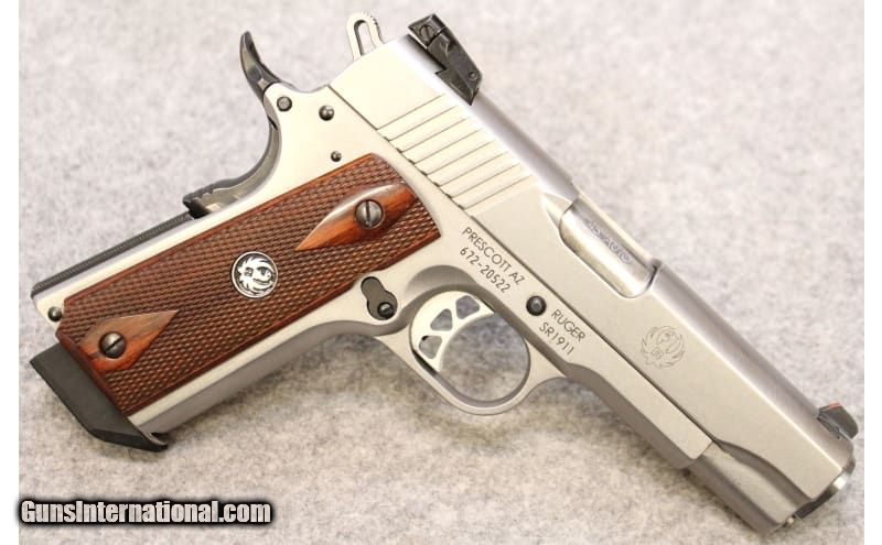 Description: This Ruger SR1911 chambered in .45 Auto features, stainless finish, adjustable rear white-dots sight, dovetail front sight with red-dot, extended beavertail, checkered mainspring housing, and Ruger wood checkered grips. .45 Auto SOLD Metal Condition: Great Wood Condition: Great Bore Condition: Bright Barrels: 4 Weight: 2.3 lbs. Item Location: Hoffman Estates, IL |