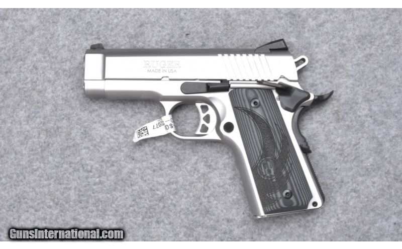 Description: This a Ruger SR1911 that is as new in box. Low-glare stainless steel finish with black accents. Drift adjustable Novak 3 dot white sights, G10 grips with Ruger wing logo, skeletonized aluminum trigger with adjustable overtravel stop. Oversized ejection port and extended magazine release and rounded mainspring housing. Classic original1911 Series 70 design. .45 ACP SOLD Caliber Info: .45ACP Metal Condition: Excellent, as New in Box Barrels: 3.60 Triggers: Alum skeletonized, adj. over travel stop Sights: Novak 3 dot white Item Location: Reno |