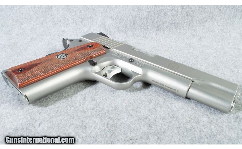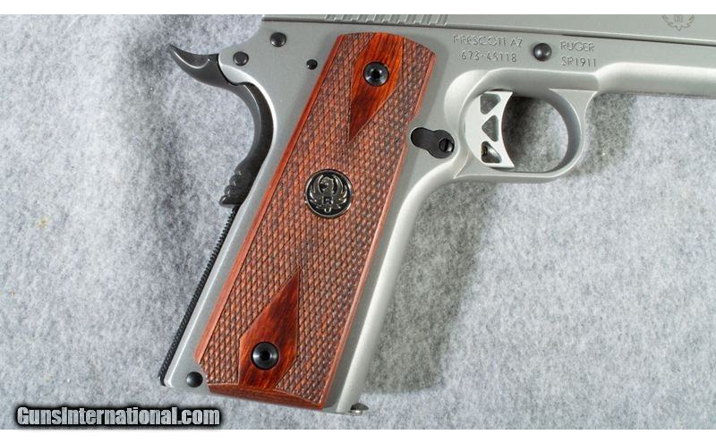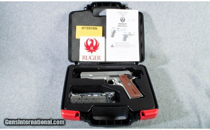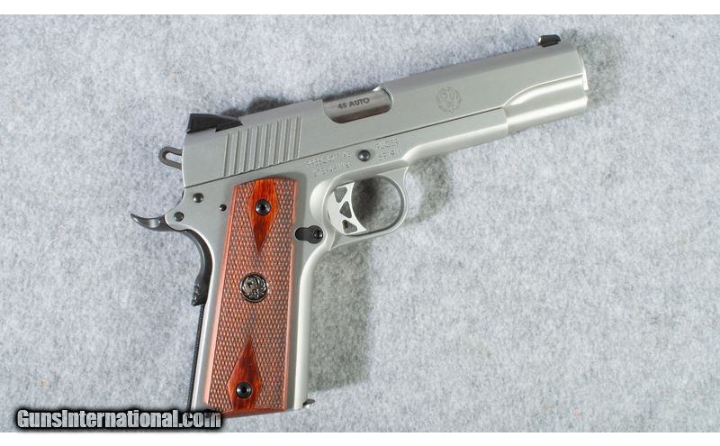 Description: Ruger SR1911 Stainless frame and slide with black nitrated controls, including a flat mainspring housing. Fine looking pistol in very good condition with fixed combat style sights. Very low mileage firearm with original box and paperwork. .45 ACP SOLD Chambers: 45acp Metal Condition: Very good Wood Condition: Very Good Bore Condition: Bright Barrels: 5 Triggers: Single Action Sights: Factory Combat style 3 dot fixed Item Location: short pump |
