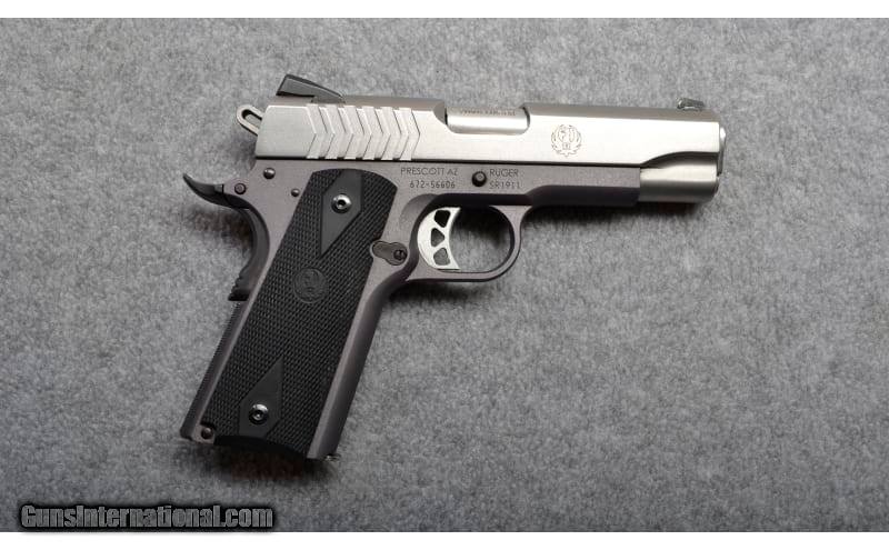Description: Pre-owned Ruger Lightweight Commander-Style SR1911 chambered in 9mm, 4.25" barrel, skeletonized trigger, beavertail grip safety, stainless steel finish. 9mm Luger SOLD Metal Condition: Very Good Condition Bore Condition: Bright and shiny with strong rifling Barrels: 4.25 inches Weight: 29.3 oz. Sights: Drift Adjustable Novak® 3-Dot Item Location: Springfield, OR |