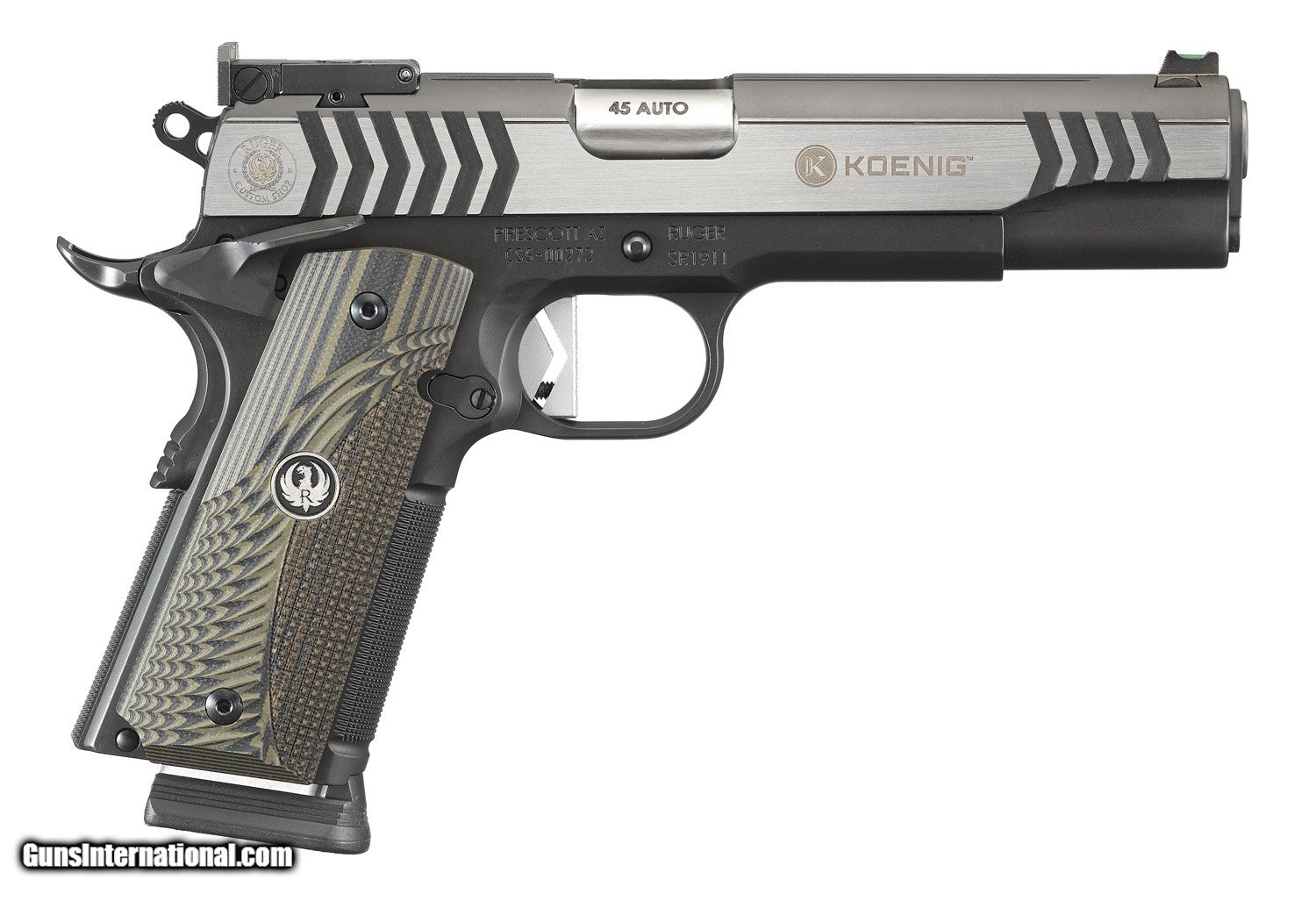 Description: BRAND NEW IN THE BOX AND READY TO SHIP! BUY IT NOW!! Manufacturer: Sturm Ruger & Co. Model: SR1911 Competition SKU: 6776 Caliber: .45 ACP / AUTO Capacity: 8 Rounds Barrel Length: 5" Twist: 1:16" RH Grip Frame: Black Nitrided Stainless Steel Grip Panels: Textured G10 Slide: Stainless Steel, Black Nitrided and Stainless Two-Tone Sights: Fiber Optic - Front, Adjustable Target - Rear Overall Length: 8.67" Height: 5.63" Width: 1.45" Weight: 40 oz Get competition ready with the Ruger SR1911 Competition! This gun is made to prepare the discerning shooter for the best runs of their life, featuring the accuracy and power you'd expect from a Ruger 1911 combined with the reliability and efficiency of a made-for-competition firearm.