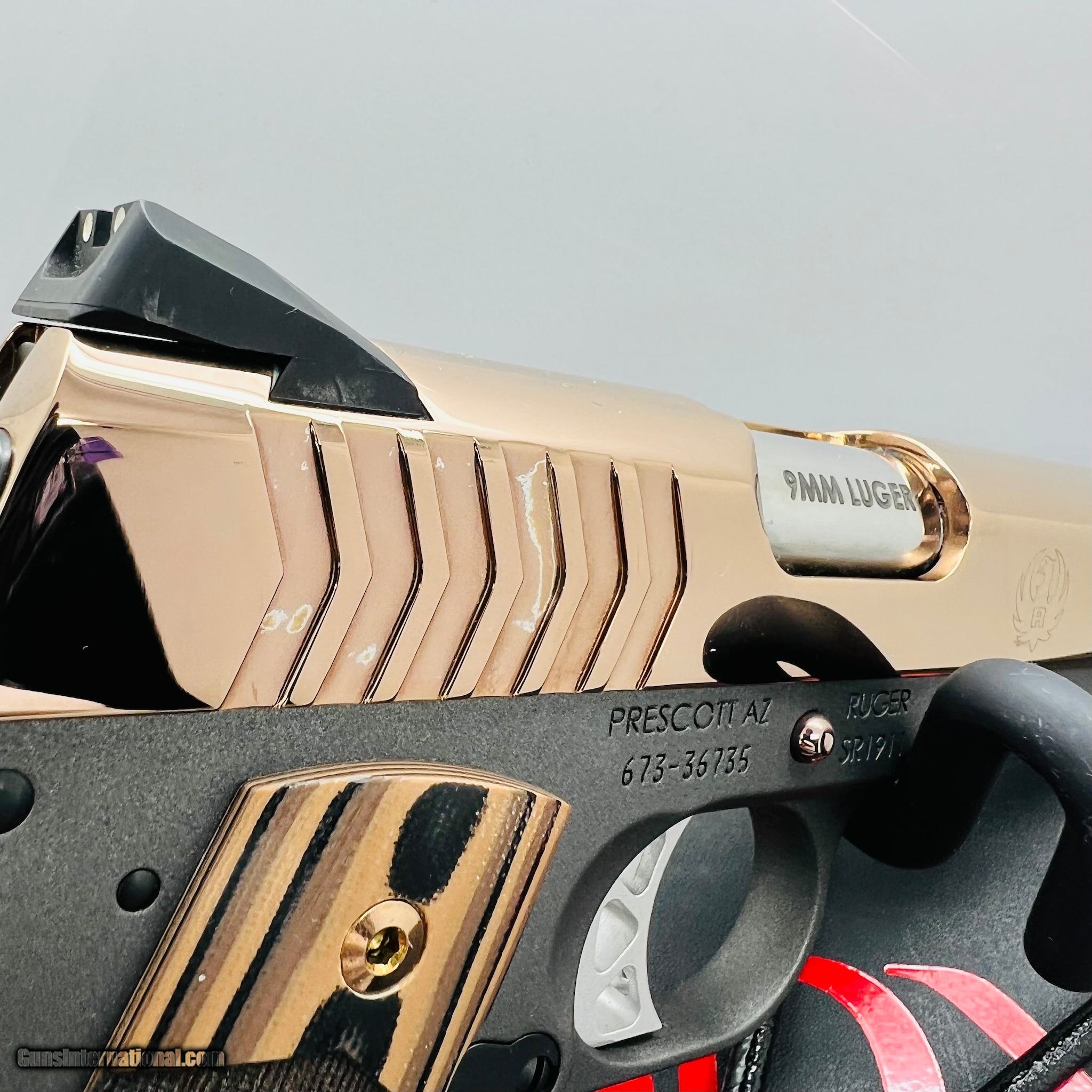 Description: Guns Listing ID: 565464 For Sale RUGER SR1911 LIGHTWEIGHT COMMANDER, 9MM ROSE GOLD PVD This pistol is in GREAT condition with some blemish to paint on slide, see pictures. Includes original box and two 8-round magazines. SOLD Manufacturer: RUGER Model: SR1911 LIGHTWEIGHT COMMANDER Caliber Info: 9MM LUGER (9X19 PARA) Condition: Used - Non-Certified Barrels: 4.25 BARREL Finish: ROSE GOLD |
