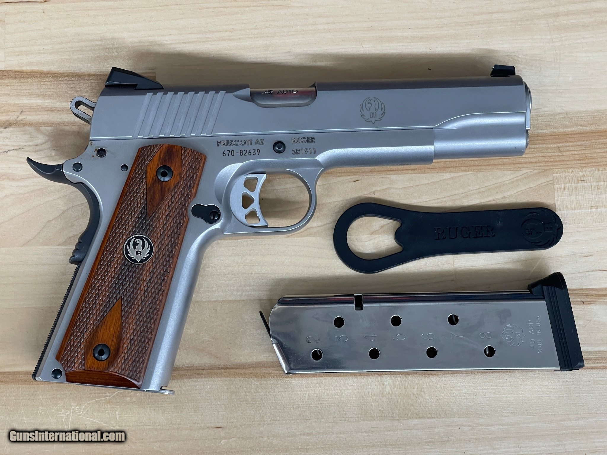 Description: Guns Listing ID: 1104345 Up for sale today we have a Ruger SR1911. This pistol is chambered in god’s caliber 45 ACP. He has a 5 inch barrel and white three dots sites. Overall, the pistol is still in very good to excellent condition and shows very little signs of use. Included with the pistol is the factory box and soft case, along with two magazines and bushing wrench. SOLD Manufacturer: RUGER Model: SR1911 STANDARD Caliber Info: .45 ACP Condition: Used - Non-Certified Barrels: 5 BARREL |