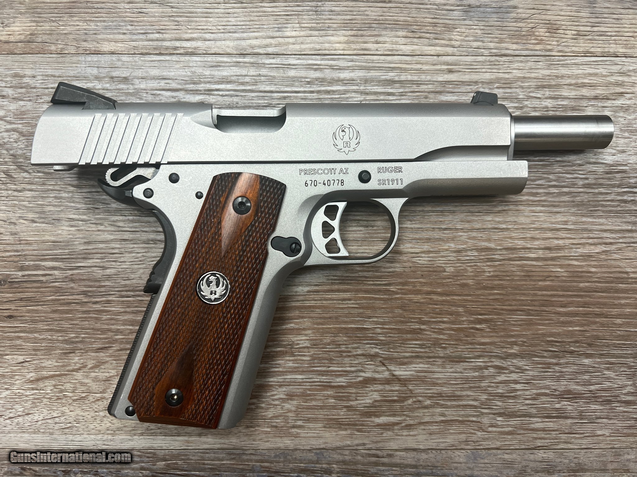 Description: Guns Listing ID: 1165805 This pistol has a 5in barrel with a 8rd magazine and two 6rd magazines. Original box included. SOLD Manufacturer: RUGER Model: SR1911 STANDARD Caliber Info: .45 ACP Condition: Used - Non-Certified Barrels: 5 BARREL |