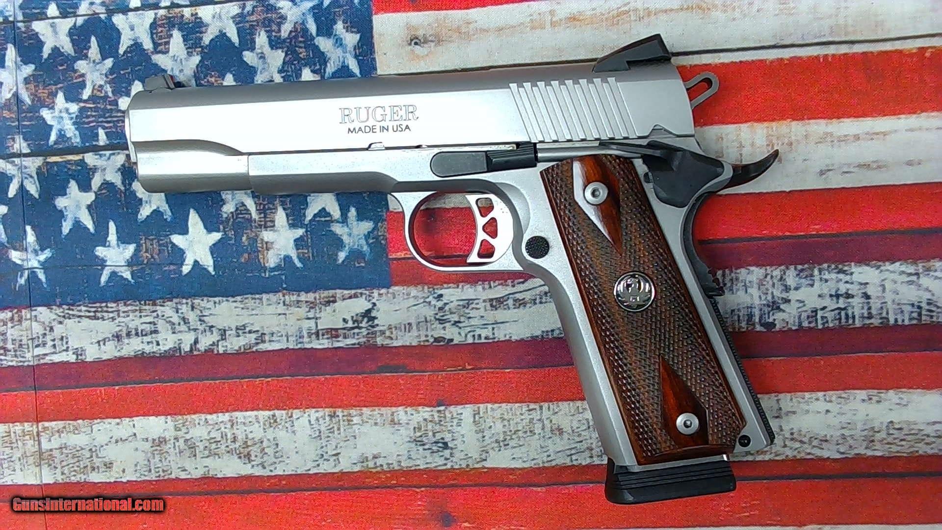 Description: Guns Listing ID: 772325 Excellent condition, this is a beautiful Ruger 1911 Stainless 45 acp. Comes with two 8 round magazines and original box. (Box is in rough condition) The Ruger SR1911 Standard delivers good performance and accuracy in an ergonomic, durable, and reliable handgun design. It comes chambered in .45ACP with a 5 inch barrel. Features include adjustable sights, manual and grip safeties, and two 8 round magazines. SOLD Manufacturer: RUGER Model: SR1911 STANDARD Caliber Info: .45 ACP Condition: Used - Non-Certified Barrels: 5 BARREL |