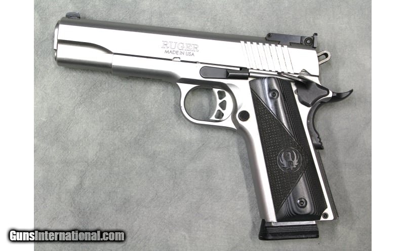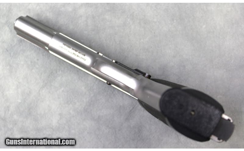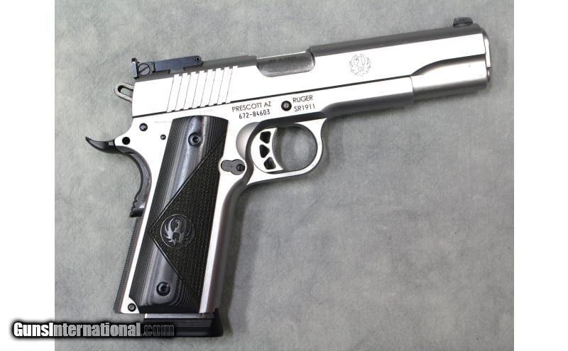 Description: Ruger's SR1911 Target pistol is constructed from precision CNC-controlled machining process that results in a superior slide-to-frame fit and smooth slide travel. The stainless steel barrel and bushing are produced from the same bar stock, on the same machine, for improved accuracy. Its lightweight, aluminum, skeletonized trigger features an adjustable over-travel stop and provides a very crisp, no creep, light trigger pull with a quick, positive reset. This model also includes swaged link pin and titanium firing pin. .45 Auto SOLD Metal Condition: Excellent Bore Condition: Excellent Barrels: 5 Weight: 2.5 lbs Sights: Bomar-Style Adjustable Target sights Item Location: Las Vegas, NV |