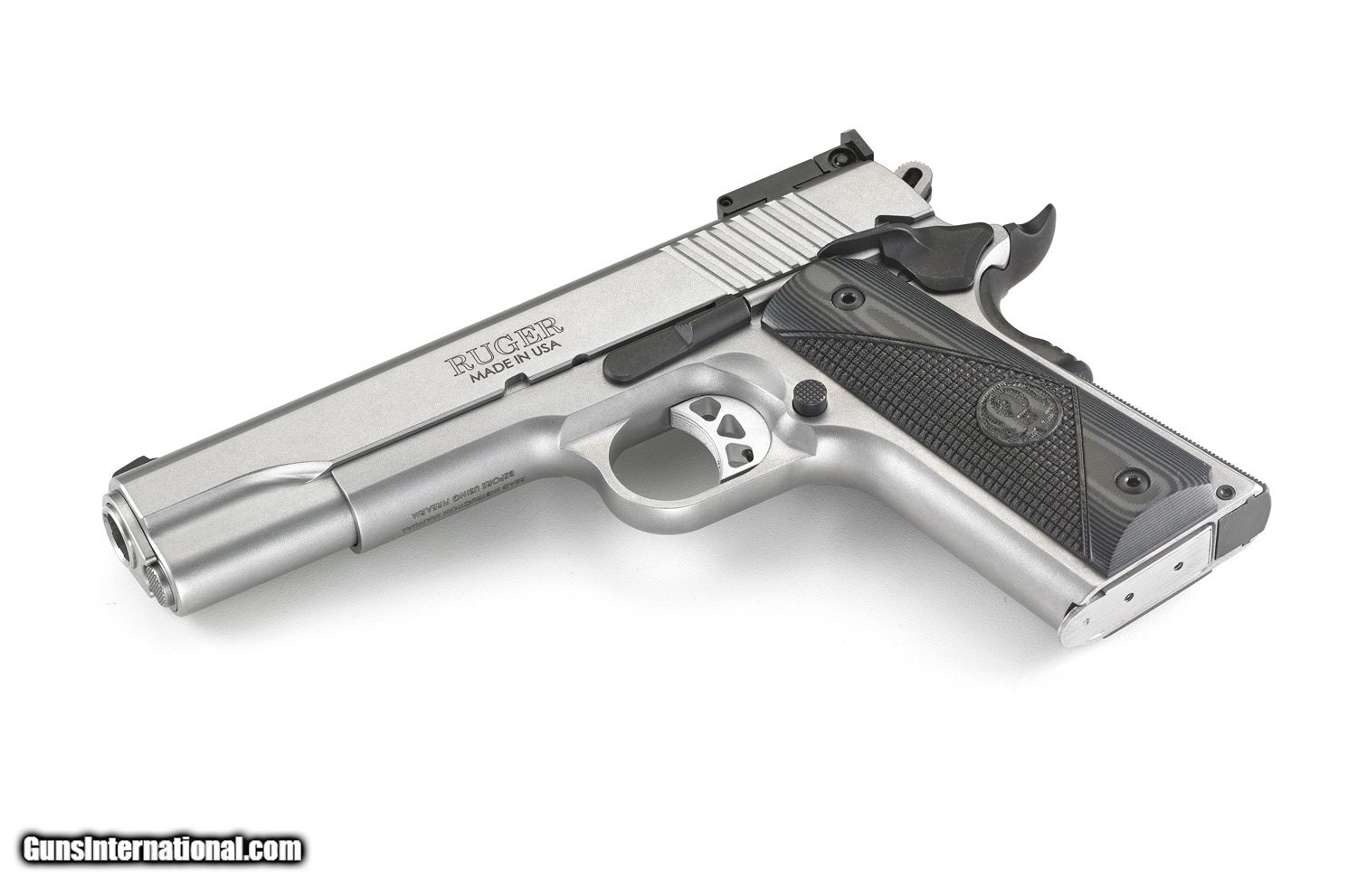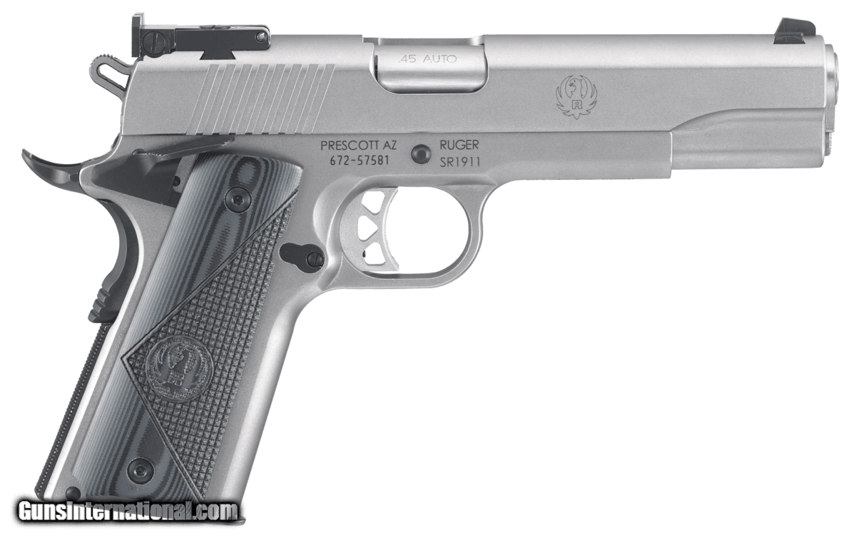 Description: Guns Listing ID: 53253 The Ruger SR1911 is a semi-automatic centerfire pistol modeled after classic 1911 style with a low-glare finished stainless steel frame and barrel and brushing crafted from the same bar on the same machine for added accuracy. The CNC-controlled machining process ensures a superior slide-to-frame fit and smooth slide action while this handgun also features an extended magazine release beavertail grip safety oversized ejection port and grip with replaceable panels and a stippled backstrap. The lightweight aluminum skeletonized trigger is adjustable and provides a crisp light trigger pull with a quick positive reset while the skeletonized hammer aids in faster cycling. Available in 45 ACP 9mm and 10mm SR1911 also features a swaged link pin and titanium firing pin while a positive barrel lock-up ensures superior out-of-the-box accuracy. Details Caliber 45 Auto - Capacity 81 - Slide Material Stainless Steel - Barrel Length 5 - Grip Frame Low-Glare Stainless - Grip Panels Deluxe Checkered G-10 - Model Type Target - Slide Finish Low-Glare Stainless - Width 1.34 - Sights Bomar-Style Adjustable - Weight 39 oz. - Overall Length 8.67 - Height 5.45 - Grooves 6 - Twist 116 RH - Precision CNC-controlled machining process results in a superior slide-to-frame fit and smooth slide travel. - The stainless steel barrel and bushing are produced from the same bar stock on the same machine for improved accuracy. - Positive barrel lock-up allows for superior accuracy out of the box. - Classic original 1911 Series 70 design. - Traditional design with replaceable grip panels and checkered backstrap. - Lightweight aluminum skeletonized trigger features an adjustable over-travel stop and provides a very crisp no creep light trigger pull with a quick positive reset. - Skeletonized hammer is lightweight and provides faster cycling. - Oversized beavertail grip safety provides positive function and reliability. - Extended thumb safety and slide stop lever for improved positive manipulation. - Integral plunger tube for slide stop and thumb safety is not staked and will never come loose. - Oversized ejection port and extended magazine release enhance competition performance. - Features a standard recoil guide system and flat mainspring housing. - Visual inspection port allows for visual confirmation of a loaded or empty chamber. - Rear slide serrations allow for positive grip. - Accepts standard aftermarket 1911 parts and accessories. - Also includes swaged link pin titanium firing pin two stainless steel magazines bushing wrench. - Ambidextrous Manual Safety SOLD Manufacturer: RUGER Model: SR1911 TARGET Caliber Info: .45 ACP Condition: new Barrels: 5 barrel Finish: STAINLESS |