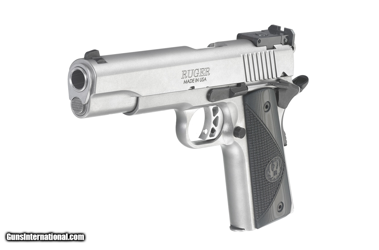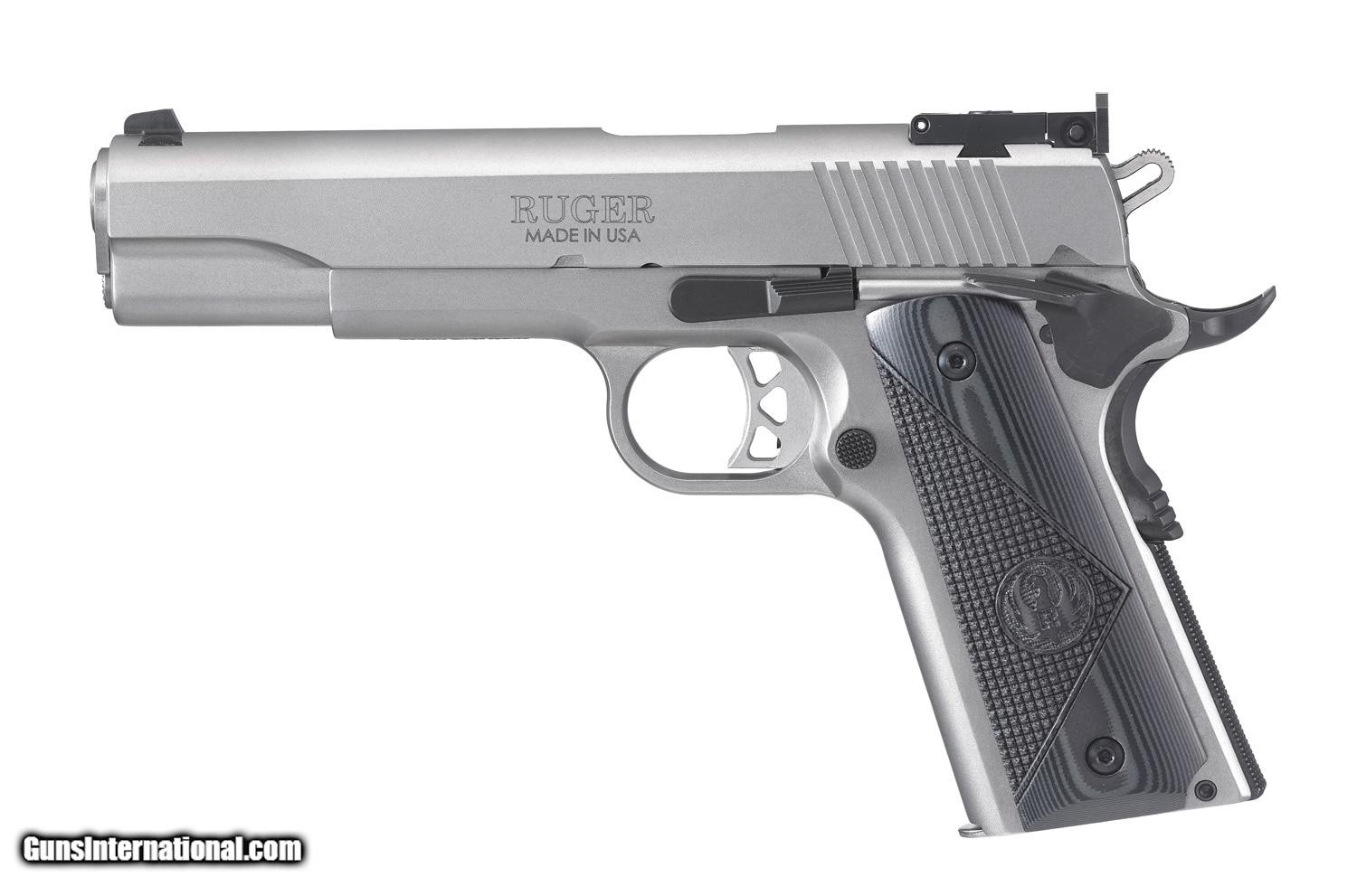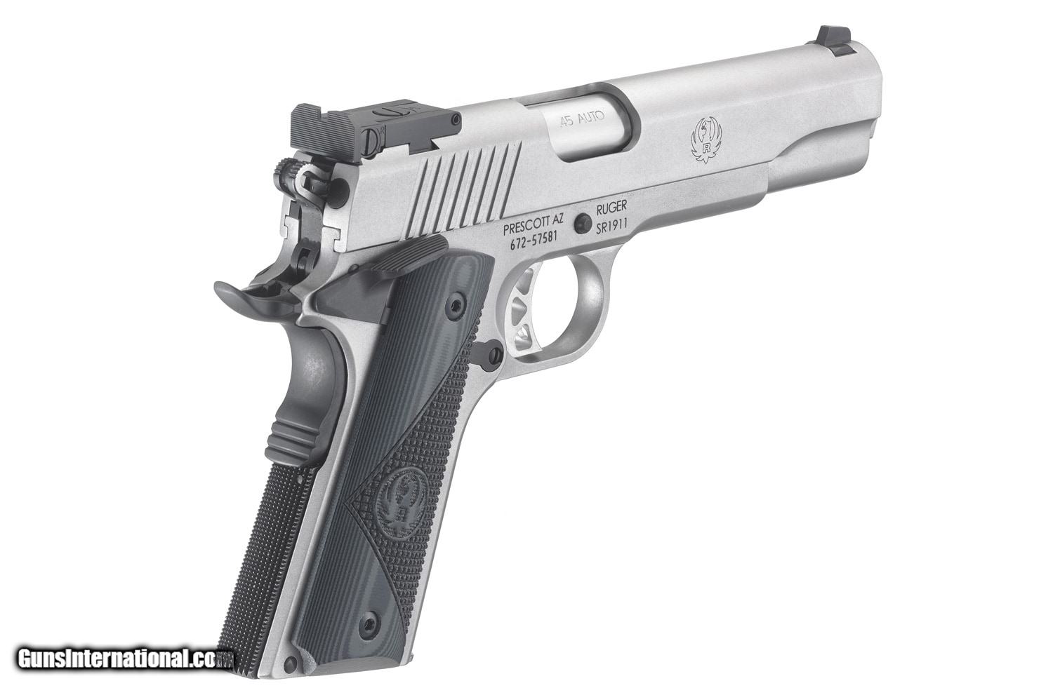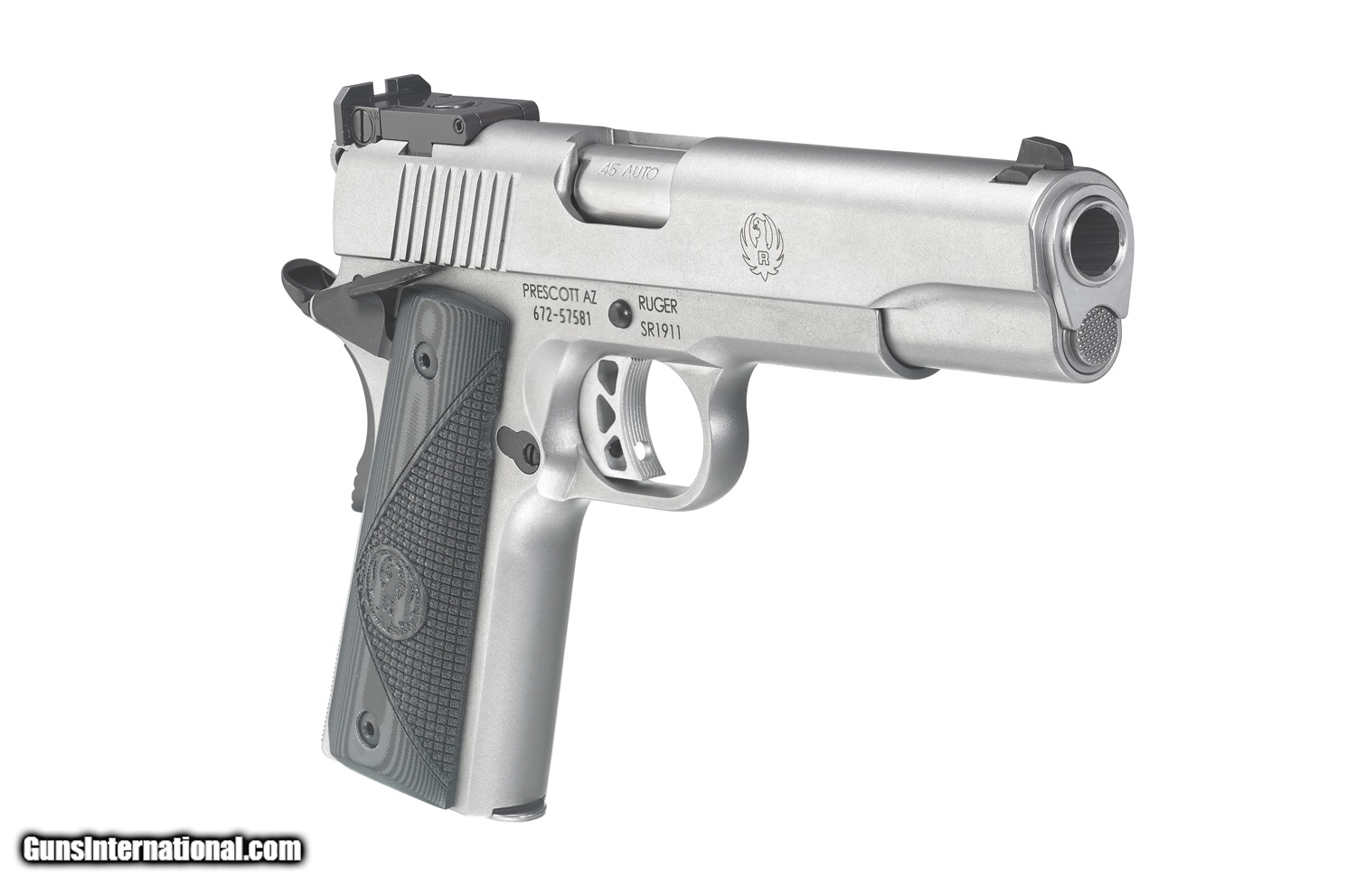 Description: Guns Listing ID: 586 The Ruger SR1911 is a semi-automatic centerfire pistol modeled after classic 1911 style with a low-glare finished stainless steel frame and barrel and brushing crafted from the same bar on the same machine for added accuracy. The CNC-controlled machining process ensures a superior slide-to-frame fit and smooth slide action while this handgun also features an extended magazine release beavertail grip safety oversized ejection port and grip with replaceable panels and a stippled backstrap. The lightweight aluminum skeletonized trigger is adjustable and provides a crisp light trigger pull with a quick positive reset while the skeletonized hammer aids in faster cycling. Available in 45 ACP 9mm and 10mm SR1911 also features a swaged link pin and titanium firing pin while a positive barrel lock-up ensures superior out-of-the-box accuracy. Details Caliber 45 Auto - Capacity 81 - Slide Material Stainless Steel - Barrel Length 5 - Grip Frame Low-Glare Stainless - Grip Panels Deluxe Checkered G-10 - Model Type Target - Slide Finish Low-Glare Stainless - Width 1.34 - Sights Bomar-Style Adjustable - Weight 39 oz. - Overall Length 8.67 - Height 5.45 - Grooves 6 - Twist 116 RH - Precision CNC-controlled machining process results in a superior slide-to-frame fit and smooth slide travel. - The stainless steel barrel and bushing are produced from the same bar stock on the same machine for improved accuracy. - Positive barrel lock-up allows for superior accuracy out of the box. - Classic original 1911 Series 70 design. - Traditional design with replaceable grip panels and checkered backstrap. - Lightweight aluminum skeletonized trigger features an adjustable over-travel stop and provides a very crisp no creep light trigger pull with a quick positive reset. - Skeletonized hammer is lightweight and provides faster cycling. - Oversized beavertail grip safety provides positive function and reliability. - Extended thumb safety and slide stop lever for improved positive manipulation. - Integral plunger tube for slide stop and thumb safety is not staked and will never come loose. - Oversized ejection port and extended magazine release enhance competition performance. - Features a standard recoil guide system and flat mainspring housing. - Visual inspection port allows for visual confirmation of a loaded or empty chamber. - Rear slide serrations allow for positive grip. - Accepts standard aftermarket 1911 parts and accessories. - Also includes swaged link pin titanium firing pin two stainless steel magazines bushing wrench. - Ambidextrous Manual Safety SOLD Manufacturer: RUGER Model: SR1911 TARGET Caliber Info: .45 ACP Condition: new Barrels: 5 BARREL Finish: STAINLESS |