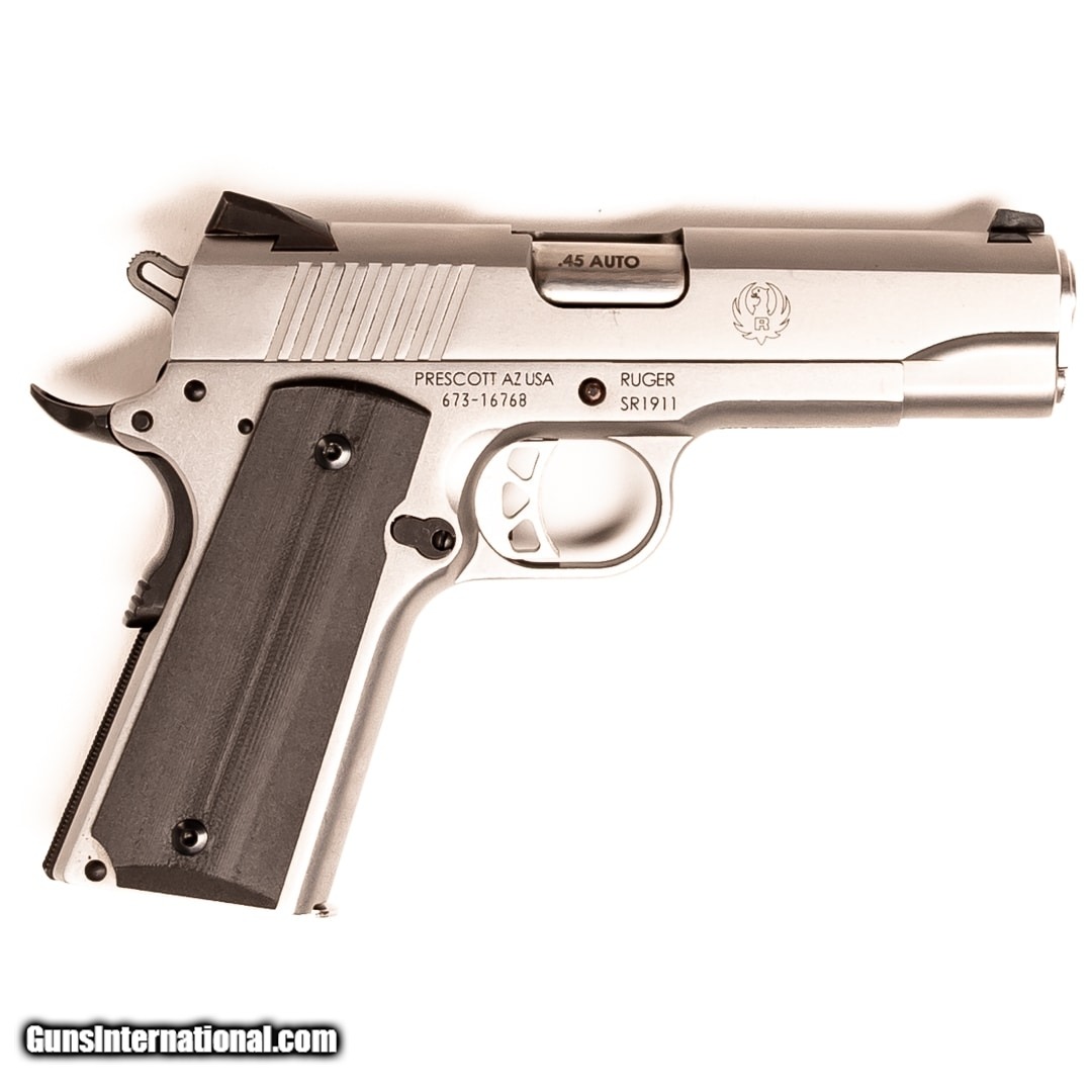 Description: Guns Listing ID: 658940 A stainless-steel interpretation of John Browning’s famous 1911, the Ruger SR1911 is a dependable sidearm that is made to last. Ruger is a ‘made in America’ brand with an outstanding reputation. This handgun features two 7-round and wood grips. Get the best bang for your buck when you get a Certified Used Firearm . When you see the Certified Used stamp on any of our firearms, you can be confident that you’re getting exactly what you want – a gun only in very good to excellent condition and held to the highest quality standard. All Certified Used Guns come with a ‘no questions asked’ return policy . PLUS, ALL CERTIFIED USED GUNS SHIP FREE! SOLD Manufacturer: RUGER Model: SR1911 Caliber Info: .45 ACP Condition: Used - Certified Barrels: 4.2 barrel Finish: STAINLESS |