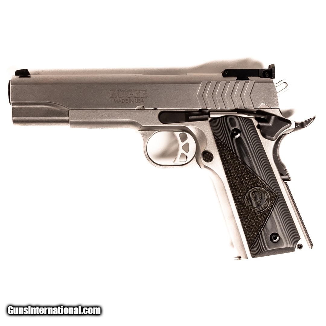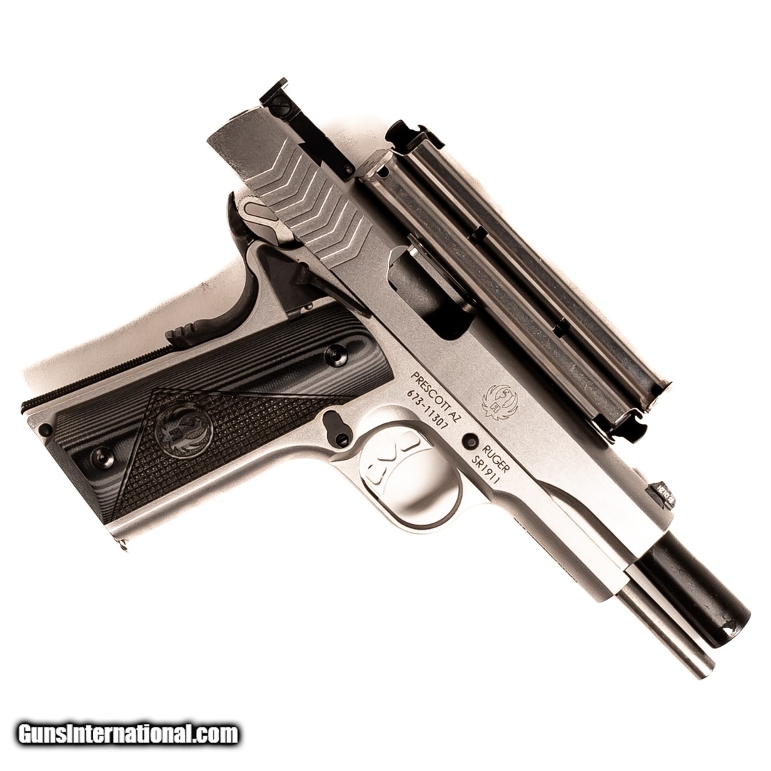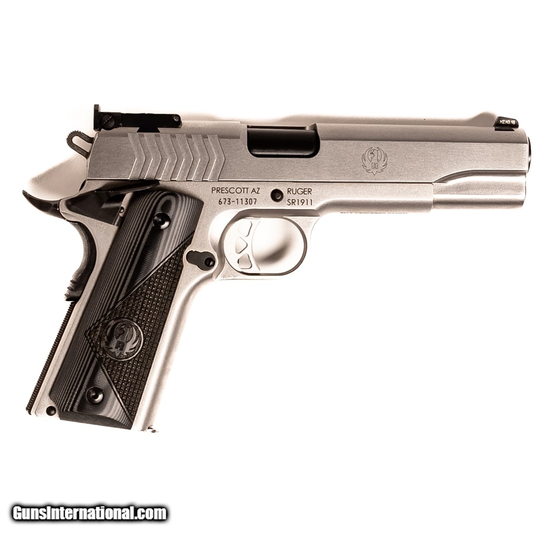 Description: Guns Listing ID: 747099 A highly accurate semi-auto handgun modeled after the 1911, the Ruger SR1911 is made with a CNC-controlled machining process to ensure a superior fit and smooth action. It is made in America, lightweight, and accepts most standard and aftermarket 1911 accessories. This SR1911 is equipped with a safety and front night sight. Purchase includes the original box, manual, and three 10-round magazines. Get the best bang for your buck when you get a Certified Used Firearm . When you see the Certified Used stamp on any of our firearms, you can be confident that you’re getting exactly what you want – a gun only in very good to excellent condition and held to the highest quality standard. All Certified Used Guns come with a ‘no questions asked’ return policy . PLUS, ALL CERTIFIED USED GUNS SHIP FREE! SOLD Manufacturer: RUGER Model: SR1911 Caliber Info: 9MM LUGER (9X19 PARA) Condition: Used - Certified Barrels: 5 BARREL Finish: STAINLESS |