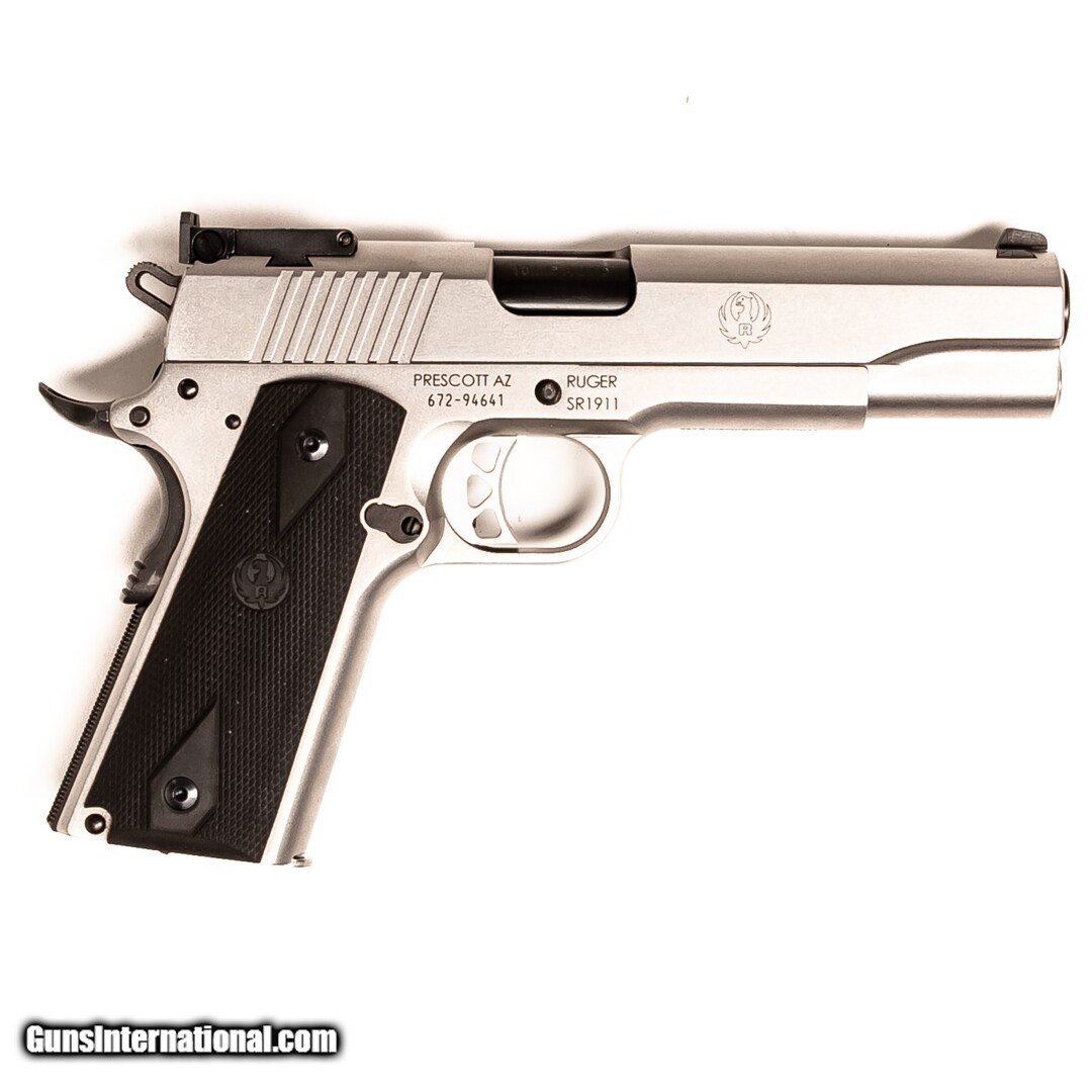 Description: Guns Listing ID: 794421 A highly accurate semi-auto handgun modeled after the 1911, the Ruger SR1911 is made with a CNC-controlled machining process to ensure a superior fit and smooth action. It is made in America, lightweight, and accepts most standard and aftermarket 1911 accessories. This SR1911 has a safety and includes the owner‚‚s manual and two 8-round magazines. Get the best bang for your buck when you get a Certified Used Firearm . When you see the Certified Used stamp on any of our firearms, you can be confident that you’re getting exactly what you want – a gun only in very good to excellent condition and held to the highest quality standard. All Certified Used Guns come with a ‘no questions asked’ return policy . PLUS, ALL CERTIFIED USED GUNS SHIP FREE SOLD Manufacturer: RUGER Model: SR1911 Caliber Info: 10MM Condition: Used - Certified Barrels: 5 BARREL Finish: STAINLESS |