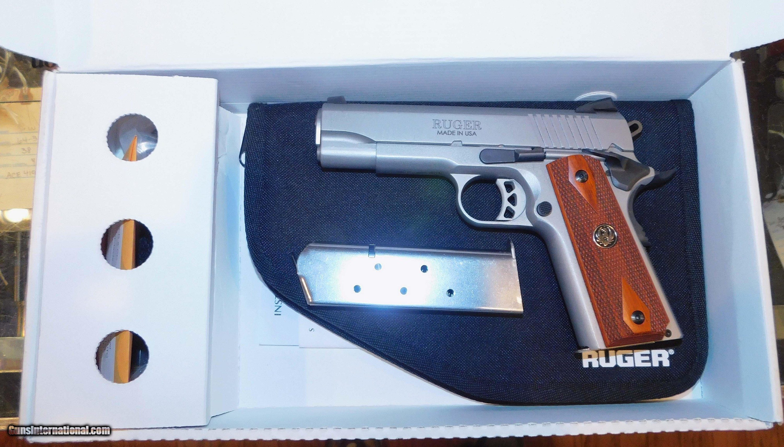 Description: RUGER SR1911 IN .45 ACP CAL., WITH 4" BARREL. COLOR STAINLESS STEEL. CONDITION 98%. SERIAL NUMBER 670-56166. RUGER MODEL SR 1911 IN .45 ACP CALIBER, MIRROR BORE, GRIPS EXCELLENT, COMES WITH TWO FACTORY MAGAZINES, BOX WITH PAPERS, 98% OVERALL CONDITION, OUR STOCK # D6241 SOLD |