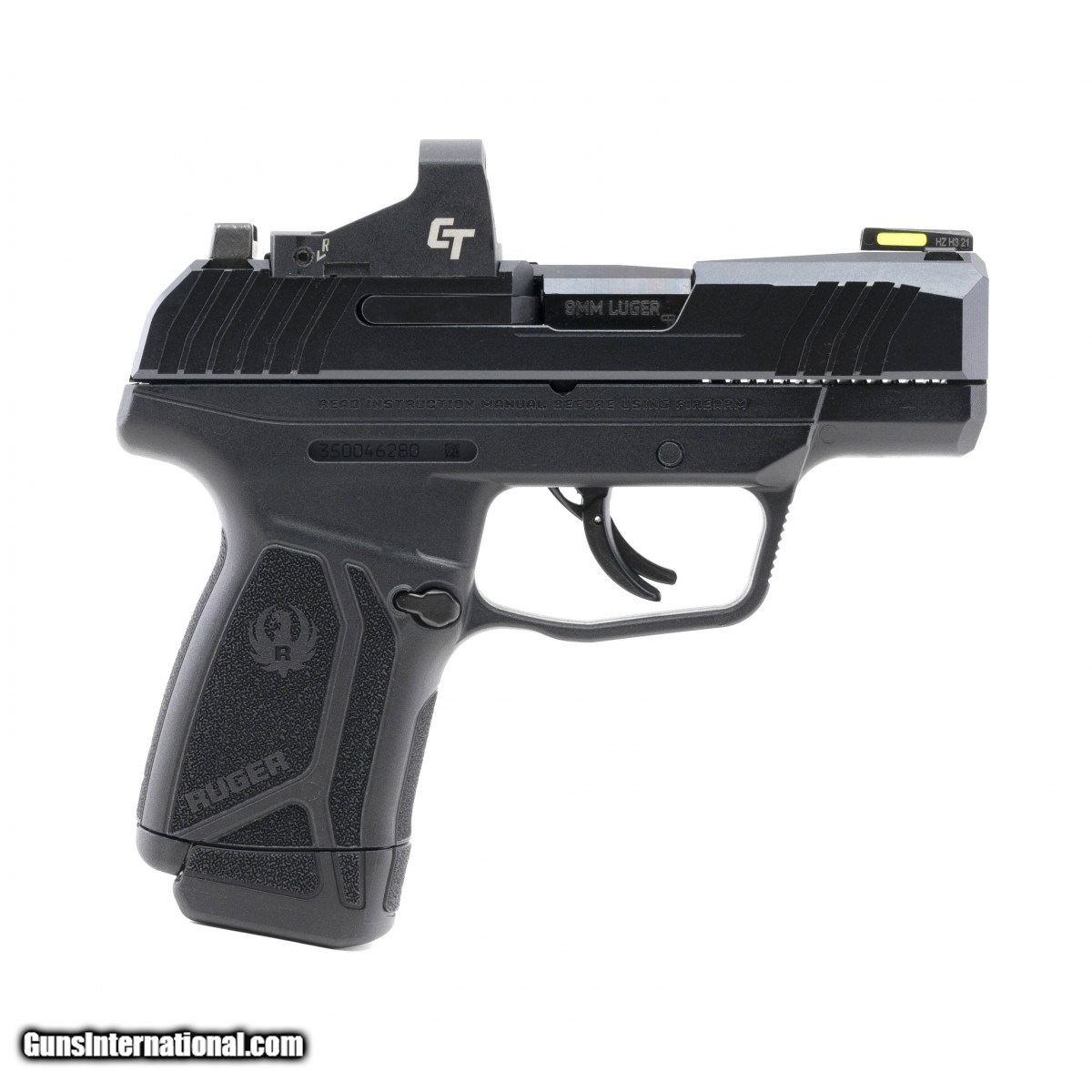 Ruger, Max-9 CT, semi-automatic, striker fired, sub-compact, 9mm, 3.2"", black, 12rd, crimson trace optic, optic ready, thumb safety, front night sight, polymer, black oxide. New. UPC:736676035045
