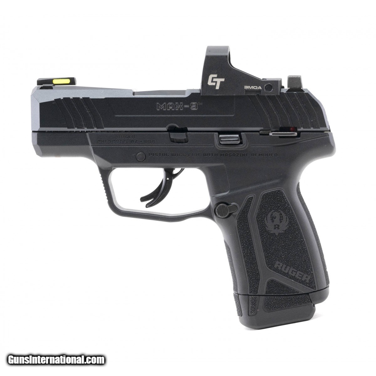 Description: " Ruger, Max-9 CT, semi-automatic, striker fired, sub-compact, 9mm, 3.2"", black, 12rd, crimson trace optic, optic ready, thumb safety, front night sight, polymer, black oxide. New. UPC:736676035045 SOLD |