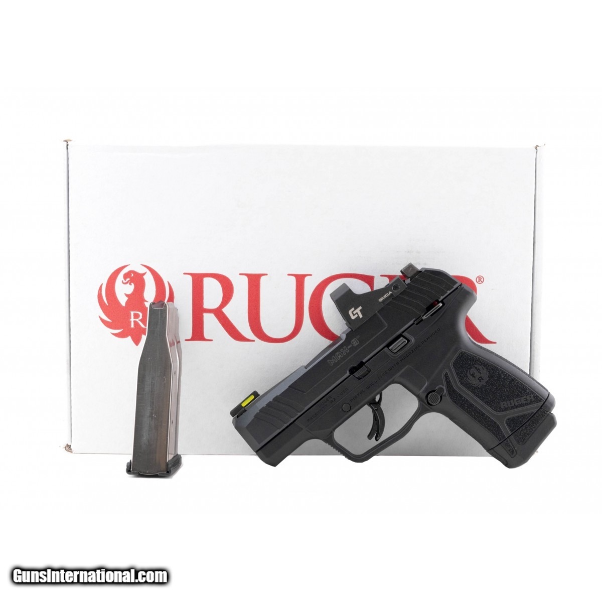 Description: " Ruger, Max-9 CT, semi-automatic, striker fired, sub-compact, 9mm, 3.2"", black, 12rd, crimson trace optic, optic ready, thumb safety, front night sight, polymer, black oxide. New. UPC:736676035045 SOLD |