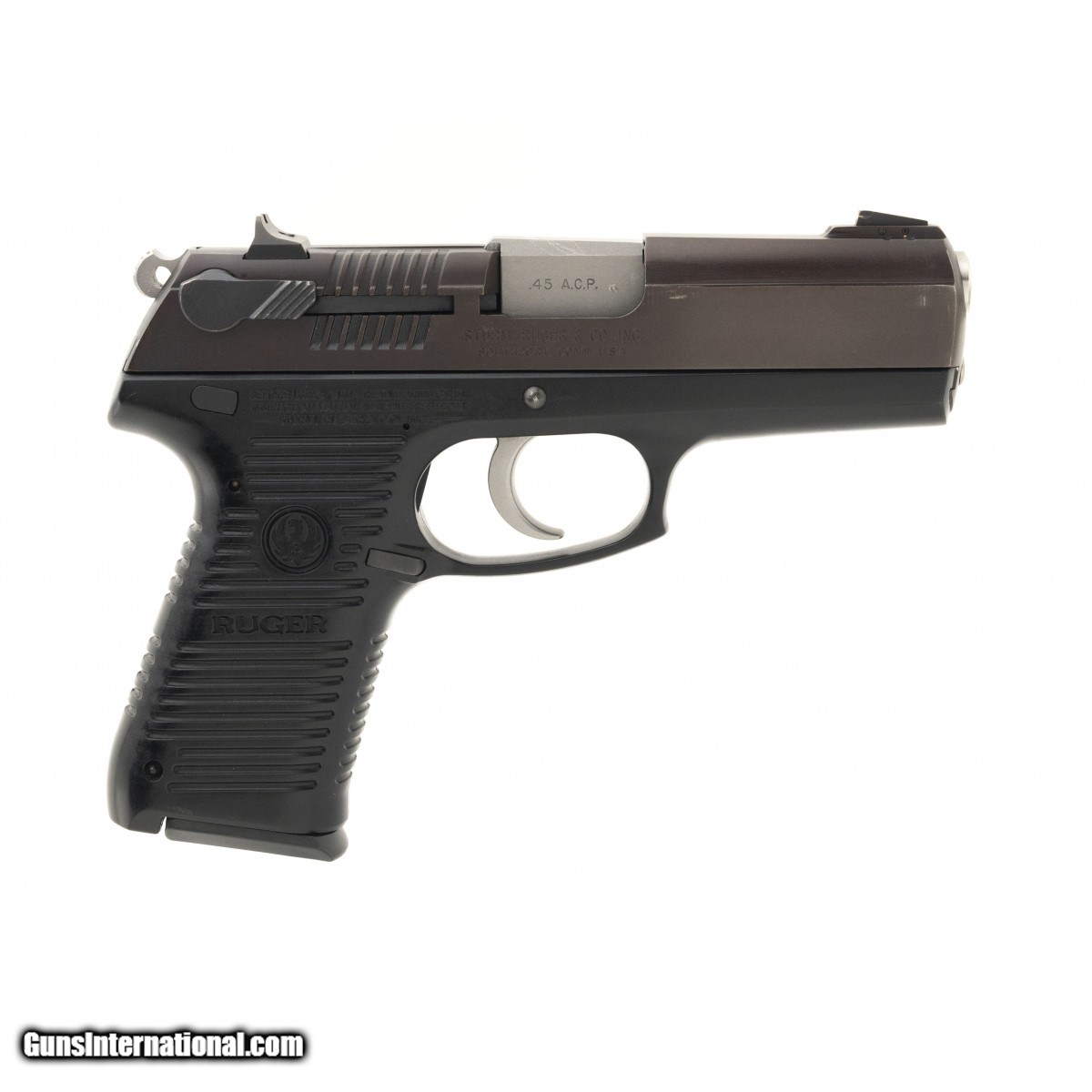 Scarce .45 auto with blue finish, polymer frame and decocker. Good condition with box and extra mag.