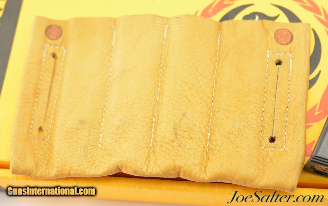 Description: Serial #214-32658, .22 LR, 4 ¾ inch barrel with a bright, excellent bore. This is the Ruger Mark II semi-automatic pistol manufactured by Ruger in 1988. In excellent, like new condition, the barrel and frame retain virtually all, 98-99% of the original blue finish. It comes in the original cardboard box and slip case. Included are 5 original Ruger 10 round magazines and a custom leather belt magazine holder with four mag pouches. An excellent example of a late 1980's Ruger Mark II. FFL; Don't forget about Free 100% Guaranteed shipping & Insurance for orders over $500 and no CC fees. ; Price: $550.00 Contact Seller |