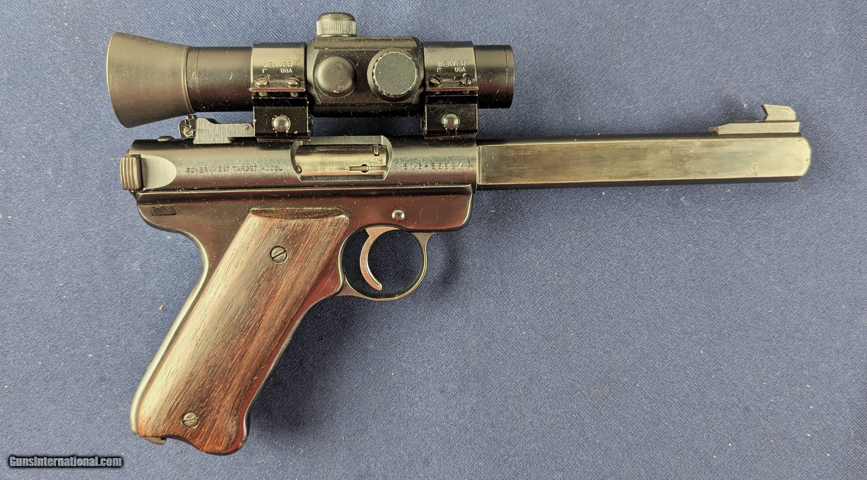 Description: New Addition Monthly Special Ruger MK II Govt.Tgt Model W/Scope Offered here for sale is a classic from the home of the Ruger Collectors Association right here in Southport, CT. This is a Ruger MK II which we have just acquired just steps away from the original Ruger plant here in Southport, CT. This is a Ruger Mark II Government Target Model .22 LR with serial number 216?28227. Based on Ruger's official serial number production data this appears vto be manufactured circa late 1990 production run.. The Government Target Model (‘G’ variant) was originally developed under a U.S. military contract. These pistols featured match-grade bull barrels, target sights, and rigorous testing to meet stringent accuracy standards .Civilian versions identical to the military contract guns began shipping in January 1987, removing only the “U.S.” stamp and adding “GOVERNMENT TARGET MODEL” . These guns were offered in blued steel and, later on, in stainless models, maintaining the same MK678G designation . The Government Target Model came with a 6.875?" bull barrel, adjustable target sights—and some versions were slab?sided to reduce weight (commonly referred to as a Competition Target Model with “flats” on the barrel) as is this one. Summary of Your Pistol’s DetailsFeatureDetailsModelRuger Mark II Government Target Model (MK678G) Serial Number216?28227 Manufacture YearLikely late 1990 Barrel6.5" slab-sided target-style (your description; factory is typically 6.875") Sight & ScopeIlluminated scope on Weaver mounts (likely aftermarket) GripsAftermarket target grips Magazine10-round (factory; common for target models) ConditionSolid, with wear on barrel finish but excellent bore The pistol comes with a small illuminated scope on Weaver mounts. It has been fitted with after market target grips and although seeing use with fading wear to barrel it is in solid condition. It comes with a 10-round magazine (not pictured). Bore excellent. Nice plinker and great to take to the range or outdoors. L360B Thanks for your bid. Shipping for this item is $42 however final shipping amount is based upon geographical area. Handling is $18.00 for longarms only. We gladly accept money orders, bank checks and personal checks. Credit card orders (VISA AND MASTER CARD ONLY) charged 3.95% additional for use. PLEASE CALL DALIA AT 203-257-5256 TO GIVE CREDIT CARD INFORMATION. Also, please view our at hansenguns. Click on "Online Catalog" and see All OF OUR ITEMS LISTED CONSECUTIVELY on or search online on that site with the ID “lope”...... OFFERED ONLINE AND AVAILABLE IN OUR RETAIL GALLERY IN SOUTHPORT, CT. Visit us also on Facebook at ://facebook/hansenguns/?fref=ts. We also own and/or operate Hansen Cartridge Co. and the Ruger Collectors Assc.(RCA). Hansen & Hansen wishes to expedite each order received, however we ship 80-100 items weekly, therefore orders paid by money orders or bank checks are cleared for shipping 5-7 days after deposited funds show in our account. Shipping date is scheduled ONLY AFTER VERIFICATION TAKES PLACE AND FFL/C&R IS RECEIVED (IF APPLIES). This is 5-7 days after WE receive order by mail - NOT customer date mailed and postmarked and after credit card funds are posted. Credit card orders exceeding $500 must be cleared through customer’s bank before shipping. Personal checks are accepted but orders are held UP TO 3 WEEKS after deposit of funds before items released for shipping. IF you have special instructions or require overnight or expedited shipping please advise at time of ordering and we will gladly prioritize shipping FOR AN ADDITIONAL CHARGE. THIS IS OUR POLICY and we encourage s to PLEASE READ AND UNDERSTAND OUR POLICY BEFORE . We would be pleased to answer ANY questions by phone (our toll free number is 1-800-571-7337 or e-mail cwlopiaol SOLD Handgun Caliber: .22 Long Rifle |