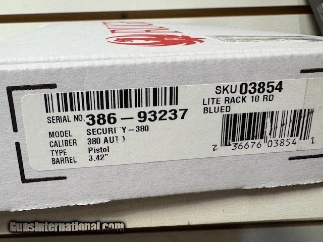 Description: Ruger Security 380 .380 Acp 3.42" 10rd W/ Hogue Grip Sleeve Model 03854 Condition Factory New 736676038541 Manufacturer Ruger Ruger Security-380, Double Action, Semi-automatic, Polymer Frame Pistol, Compact, 380 ACP, 3.42" Barrel, Black Oxide Finish, Fiber Optic Front and Drift Adjustable Rear Sights, Manual Safety and Integrated Trigger Safety, 10 Rounds, 2 Magazines, Includes Hogue Beavertail HandALL Grip Sleeve 03854 Buyer pays shipping Millers Gun Center Located in New Castle, Delaware "Home of TAX-Free shopping" No Credit Card Fees Send Gun international inquiry and then call 302-328-9747 to complete your purchase SOLD Handgun Caliber: .380 ACP (9x17mm Browning Short) Manufacturer: Ruger Model: Security 380 Serial Number: 386-93237 |