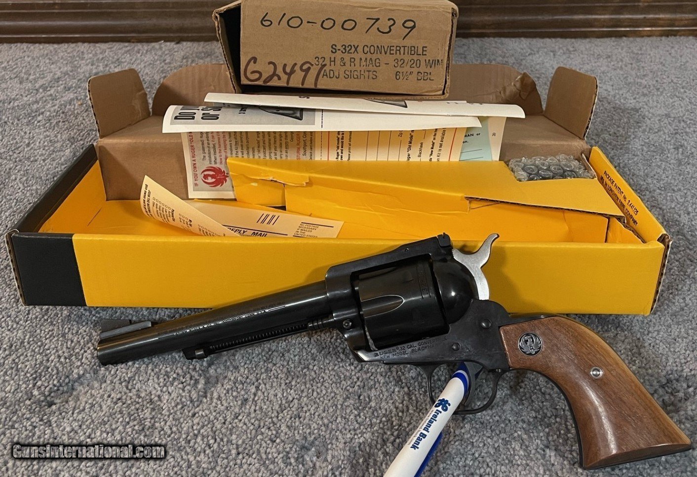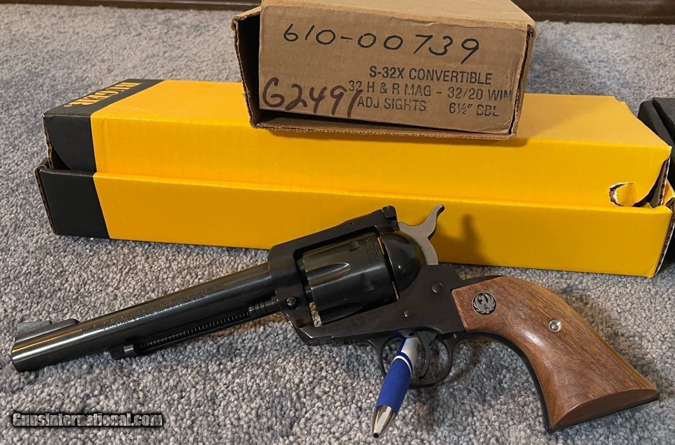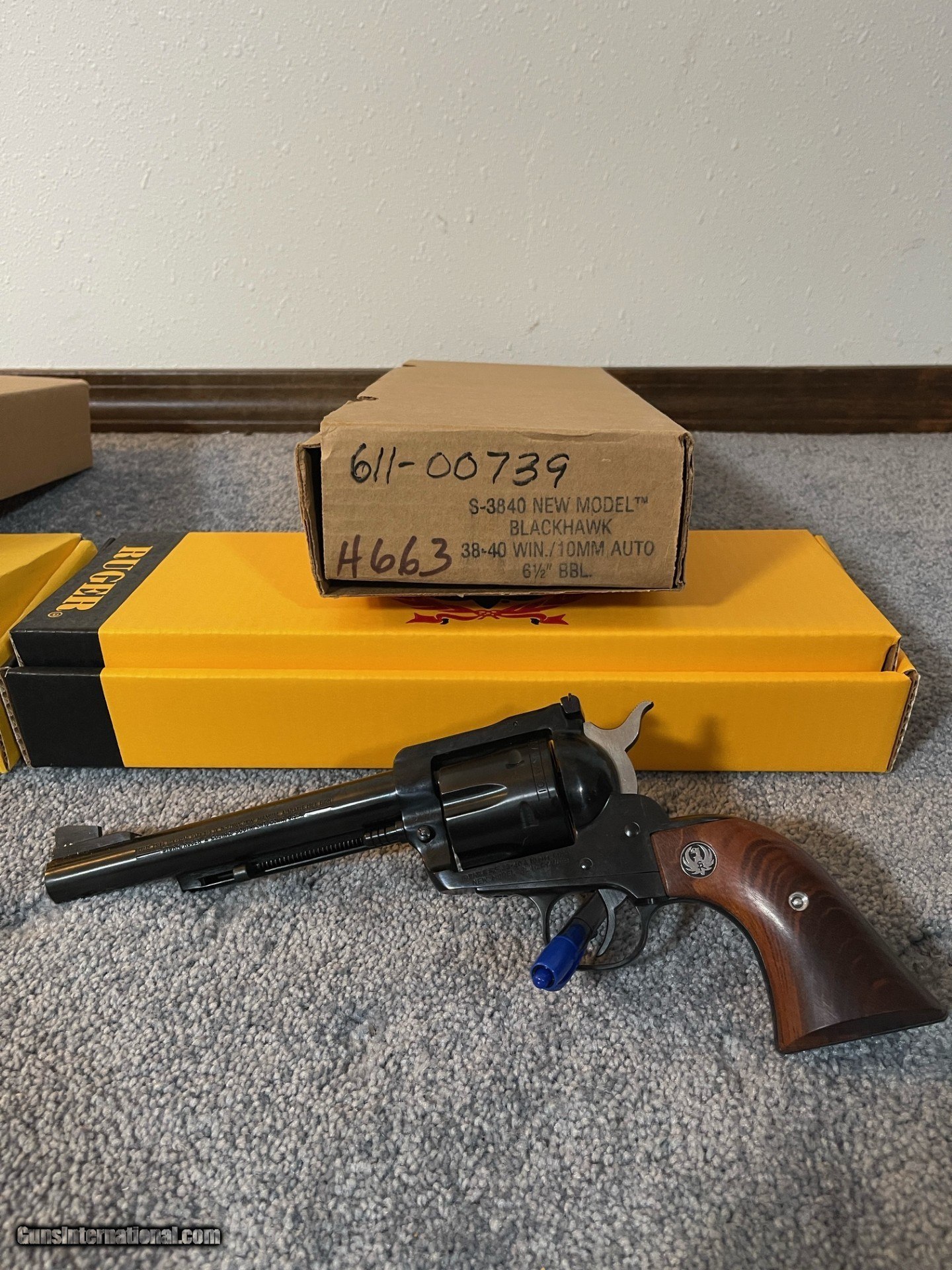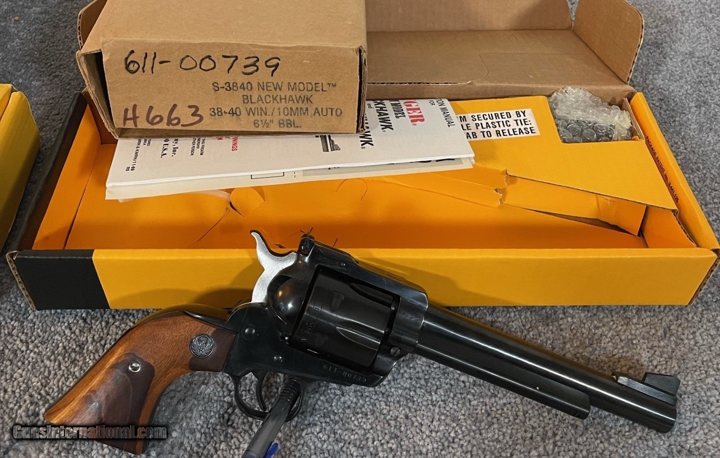 Description: I have for sale a set of Ruger Blackhawk Convertible pistols that are absolutely new in box. They were made by Ruger for and old wholesaler Buckeye Sports in Ohio. If I am not mistaken there were 5000 of each made. Each pistol has the same Serial number with a different prefix. Each pistol is absolutely NEW, they have been in a collection of Ruger pistols since purchased. The 32 H&R 32/20 was Manufactured in 1989 while the 38-40/ 10mm was made the following year. They were both manufacturer with 6 1/2 barrels the boxes come with all the old Ruger documentation/paperwork with the extra cylinders still wrapped in the bubble wrap. $2400 shipped SOLD Handgun Caliber: .32 H&R Magnum, .38-40 Winchester (.38 WCF), 10mm Auto Manufacturer: Ruger Model: Blackhawk Barrel Length: 6.5 Condition: New Metal Condition: New Wood Condition: New Bore Condition: New |