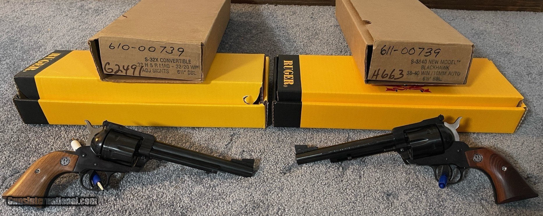 NIB Ruger Buckeye Sports Supply matched set of Blackhawk Convertible pistols 32 H&R/32/20 and 38-40/10mm