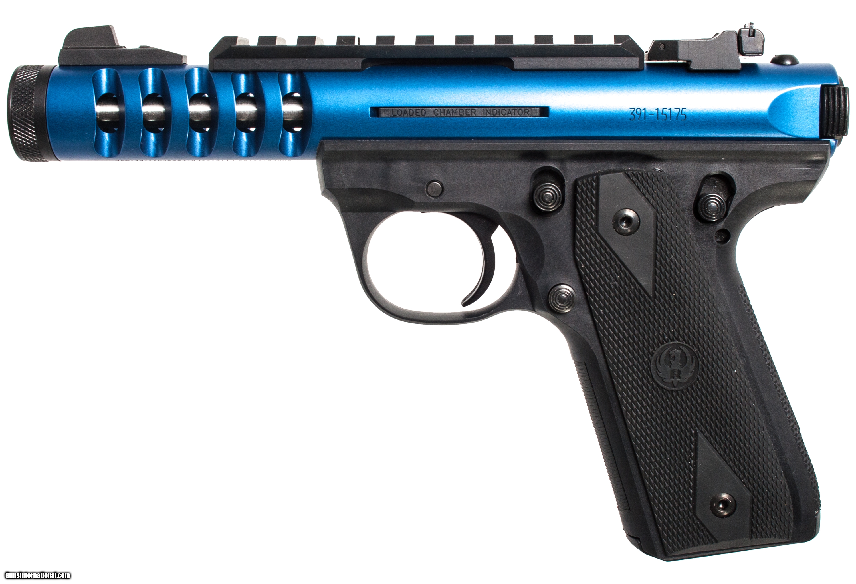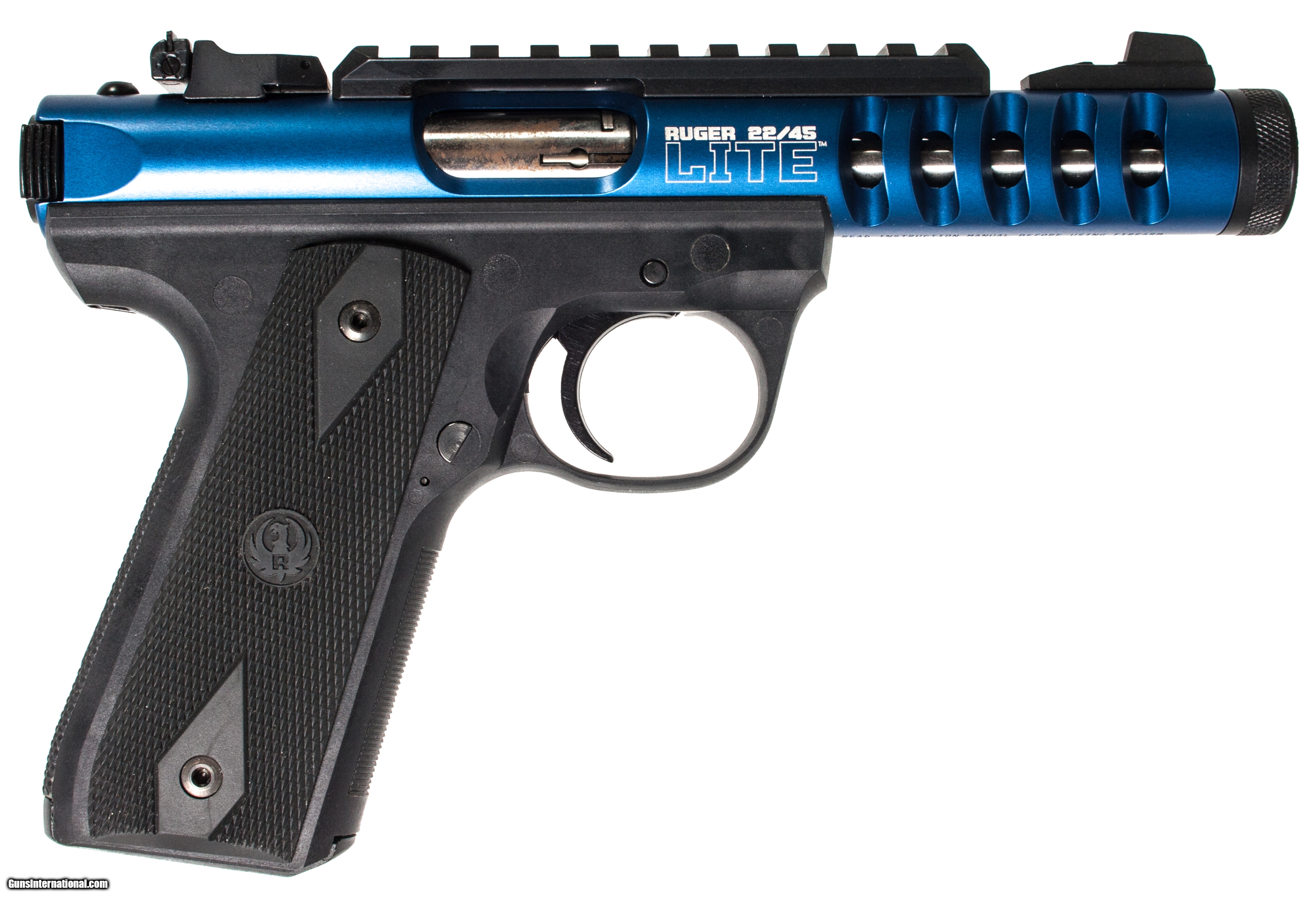 NEW IN BOX RUGER 22/45 LITE (DEEP BLUE) CHAMBERED IN 22 LR WITH A 4.5 INCH THREADED BARREL AND ADJUSTABLE REAR SIGHTS. THIS GUN IS IN EXCELLENT CONDITION AND IS COVERED BY DURY'S LIFETIME WARRANTY.