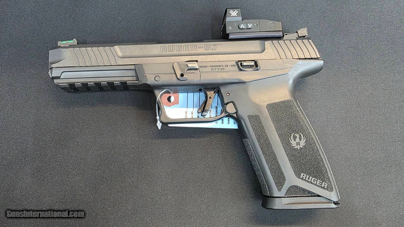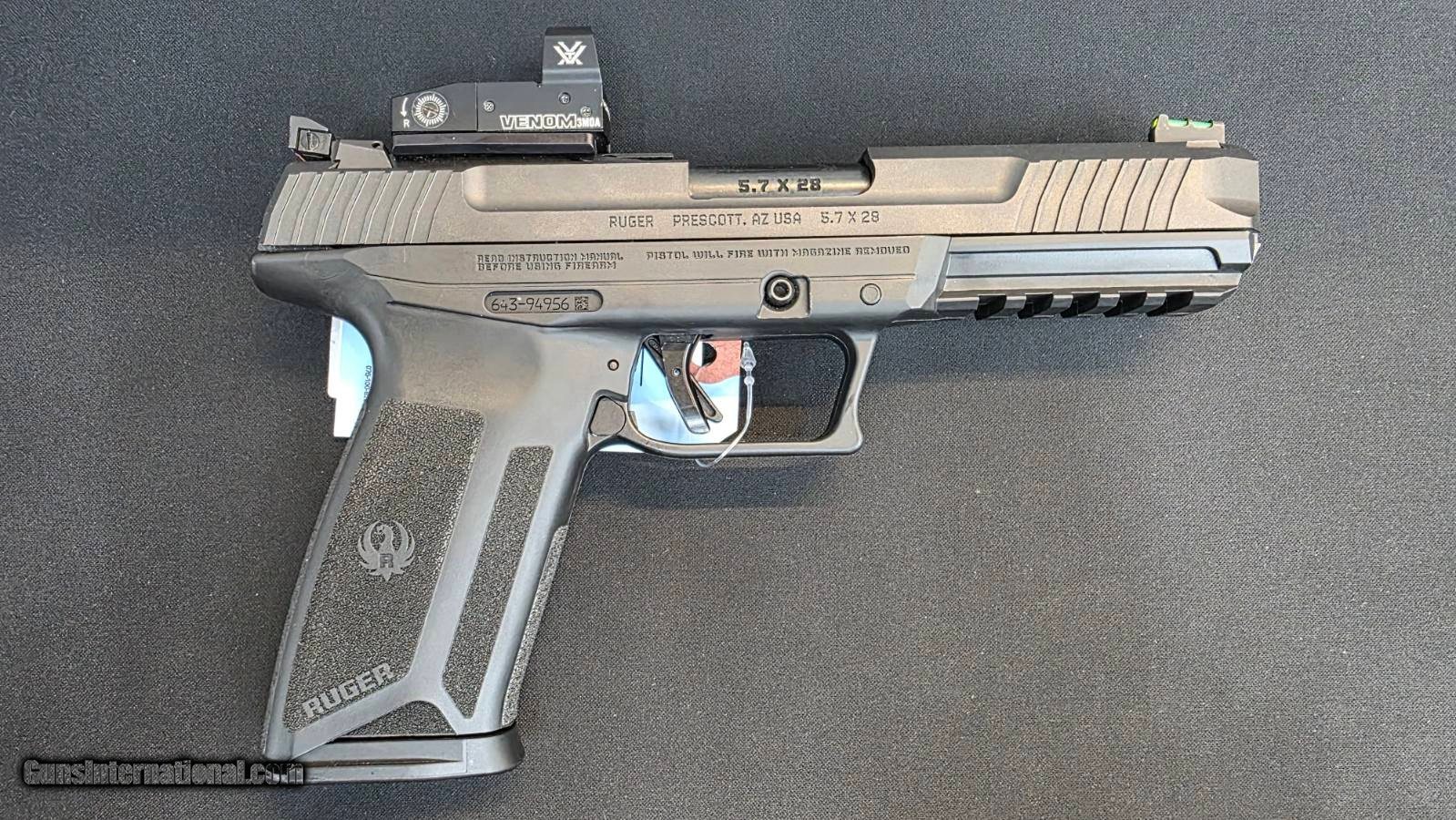 Description: Guns Listing ID: 582055 The Ruger 5.7 Pro features impressive ergonomics that include an easy trigger reach, slide release, and a reversible magazine release latch. The slide is made from a hardened steal and serrated. The iron sights on the 5.7 Pro are adjustable but an optic is always an option with the use of a separate optic adapter plate. The picatinny style rail allows for easy attachment of lights and lasers. This Ruger 5.7 Pro comes with a Vortex Venom Red Dot Optic already installed, and a single 20 round magazine. Manufacturer: RUGER Model: 5.7 Pro Caliber Info: 5.7X28MM Condition: Used - Non-Certified Barrels: 5" BARREL Action: SEMI AUTOMATIC Finish: black poly grip/frame Price: $699.99 Contact Seller |