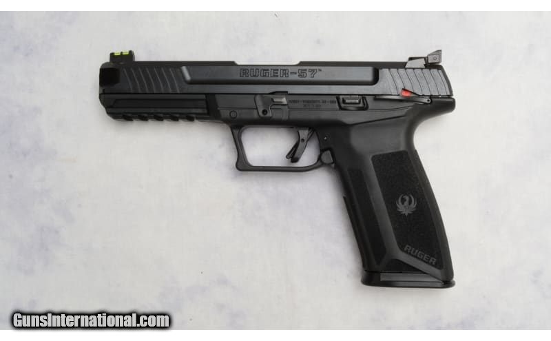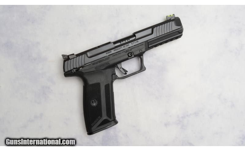 Description: This Ruger 57 features; 4.94" Barrel chambered in 5.7X28MM, Hardened Billet Steel Slide with Lightening Cuts and is Optic Ready, 1911-Style Ambidextrous Manual Safety with Integrated Trigger Safety & and Hammer Catch, Reversible Magazine Release, Adjustable Rear & Fiber Optic Front Sights, Chamber Inspection Port, Picatinny-Style Accessory Rail. Factory Case, Two (2) 20-Round Magazines, Manual. No Optic Adapter Plates. 5.7X28mm SOLD Chambers: 5.7X28MM Metal Condition: Excellent Bore Condition: Excellent Barrels: 4.94 Item Location: Green Bay |