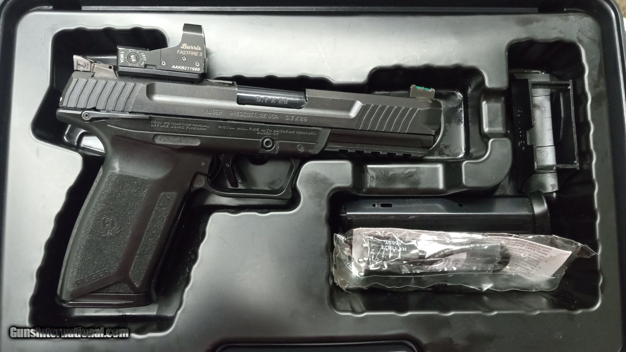 Description: Guns Listing ID: 1390075 Ruger 57 with Burris fastfire 3 red dot with 2- 20 round magazines with original box in owner‚‚s manua SOLD Manufacturer: RUGER Model: 57 Caliber Info: 5.7X28MM Condition: Used - Non-Certified Barrels: 4.94 BARREL |