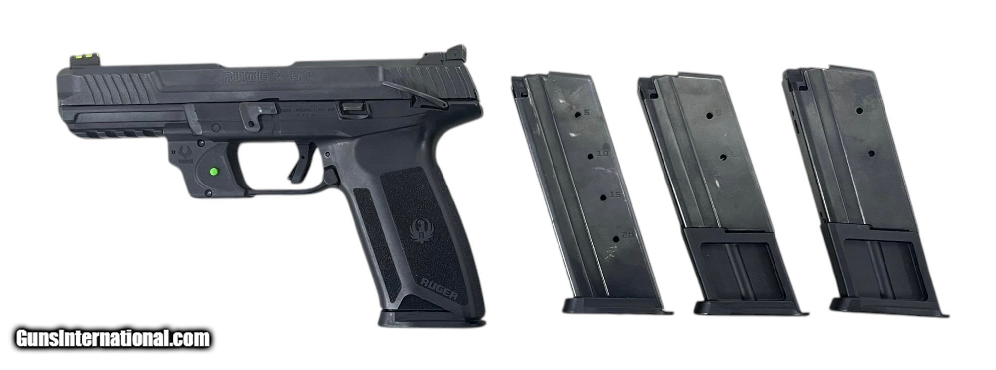 Description: Guns Listing ID: 483542 Pistol is preowned and in excellent condition. Very, very light handling marks from use are present but absolutely nothing egregious or particularly noteworthy. A Viridian green laser and four magazines (two 10-round and two 20-round) are included with purchase. Barrel is 5”, chambered in 5.7x28mm, with a capacity of 20 rounds. All orders are shipped within two business days following payment - orders are often shipped sooner than this. Payment is required within 48 hours of listings end. Listing photos show everything that is included with purchase - anything not pictured should NOT be assumed to be included unless otherwise stated in listing description. SOLD Manufacturer: RUGER Model: 57 Condition: Used - Non-Certified Barrels: 5 Gauge Info: 5.7X28MM Finish: black |