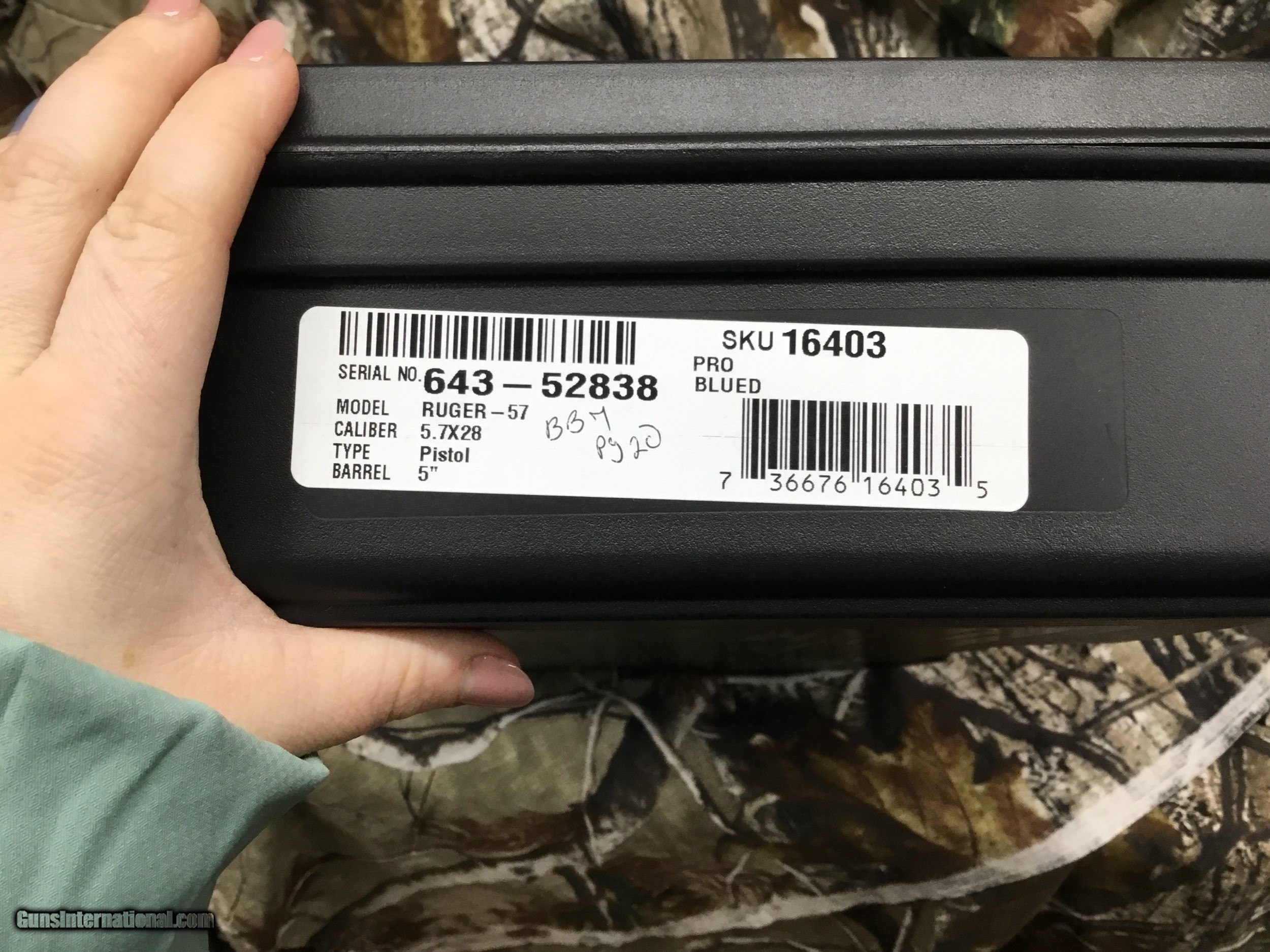 Description: Ruger 57 CALIBER 5.7 NEW IN BOX WE HAVE AMMO AS WELL 549.00 31.00 SHIP NO CARD FEE Thank you for looking at our items. If it is listed on the site, we still have it in the shop. If you wish to buy, hit buy it now and call the shop to pay. Ask for Bree....... (803) 874-1060. If you are WEST of the Mississippi add $10 more to shipping cost. NO sales to California EXCEPT under certain conditions. If you are in California, please DO NOT push buy it now and just CALL the shop first. ...... (803) 874-1060 NO INTERNATIONAL SALES. SOLD Handgun Caliber: 5.7x28mm |