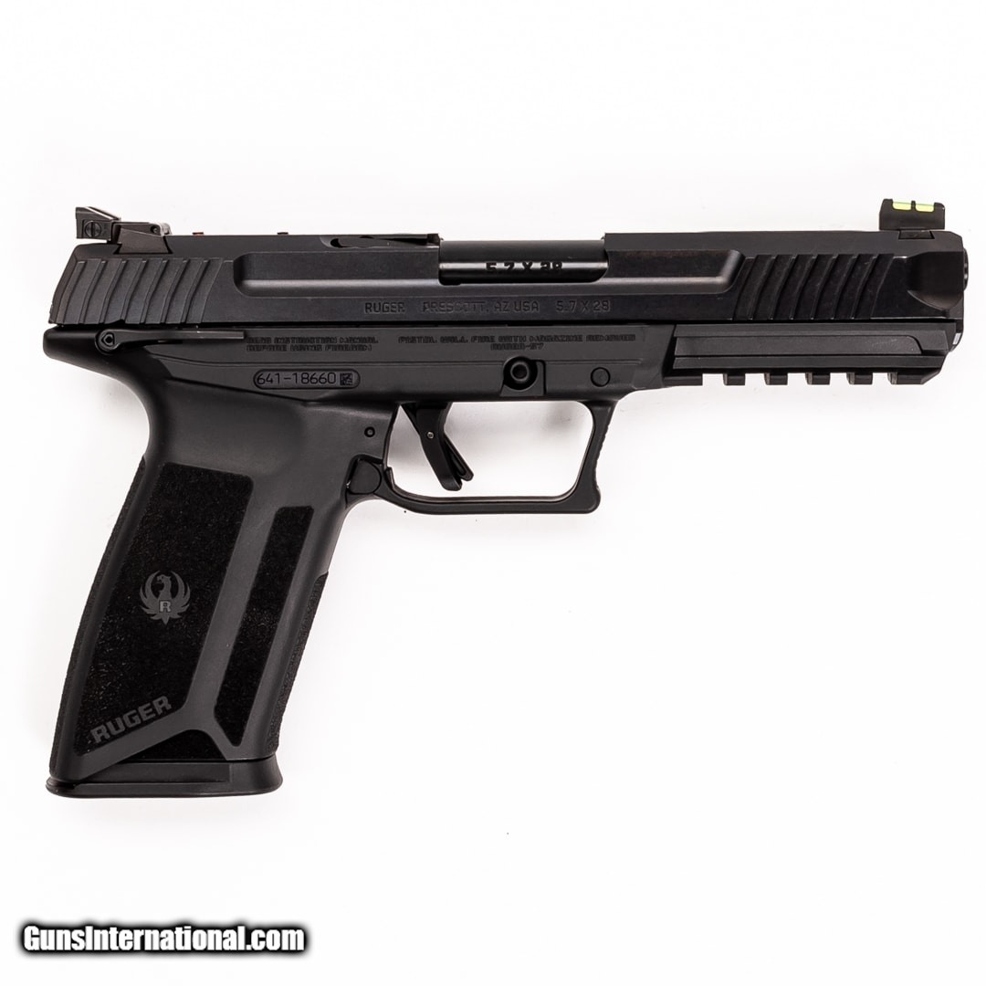 Description: Guns Listing ID: 343306 The Ruger-57 is a full-size handgun chambered in 5.7X28mm that Ruger describes as, "Fun to shoot. Cool to own." However, it is much more than that. With impressive ergonomics that includes easy trigger reach, a 1911 manual style safety, and reversible magazine latch, this pistol is a great option for tactical applications and self-defense. If you're looking for an affordable alternative to the legendary FN Five-seveN this Ruger-57 is a great option. It ships in a Ruger case with two 20-round magazines. SOLD Manufacturer: RUGER Model: 57 Caliber Info: 5.7X28MM Condition: Used - Certified Barrels: 4.9 BARREL Finish: BLACK |