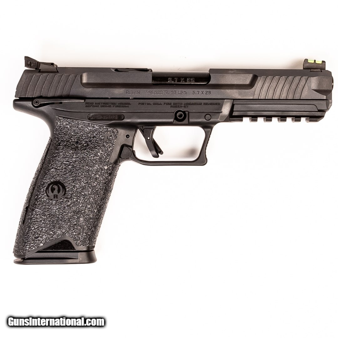 Description: Guns Listing ID: 497546 A uniquely crafted full-sized handgun chambered in 5.7X28mm, this Ruger-57 is an affordable alternative to the legendary FN Five-seveN. Loaded with impressive ergonomics and features, it is well-suited for tactical applications and self-defense. This Ruger-57 includes the original case, manual, and two 20-round magazines. SOLD Manufacturer: RUGER Model: 57 Caliber Info: 5.7X28MM Condition: Used - Certified Barrels: 5 BARREL Finish: BLACK |