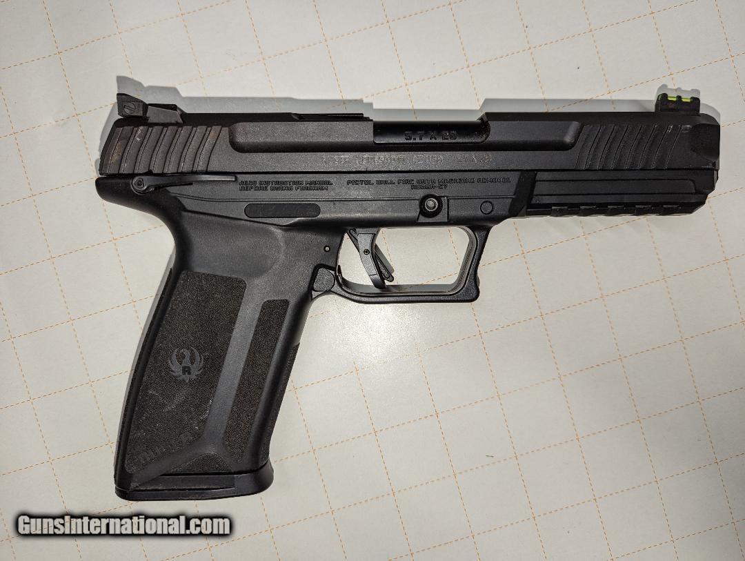 Description: Guns Listing ID: 619345 PLEASE NOTE: THIS LISTING ONLY INCLUDES 1 MAGAZINE TOTAL Firearm Specifications Caliber: 5.7X28MM Capacity: 20+1 Grip Frame: High-Performance Glass-Filled Nylon Barrel Length: 4.94? Overall Length: 8.65? Barrel Material: Alloy Steel Barrel Finish: Black Nitride Front Sight: Fiber Optic Rear Sight: Adjustable Slide Material: Alloy Steel Slide Finish: Black Oxide Weight: 24.5 oz. Slide Width: 1.20? Height: 5.60? Grooves: 8 Twist: 1:9? RH Available in CA: No Available in MA: No SOLD Manufacturer: RUGER Model: 57 Caliber Info: 5.7X28MM Condition: Used - Non-Certified Barrels: 4.94" barrel |