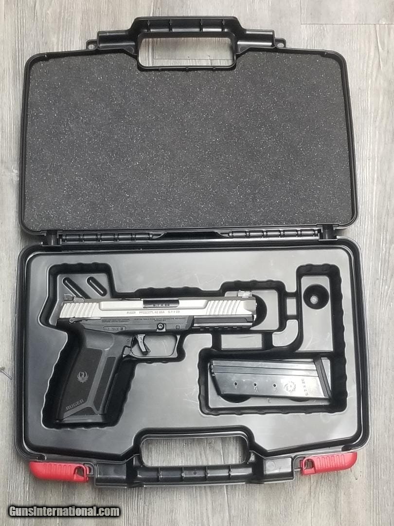 Description: Guns Listing ID: 650807 WHAT A GREAT SHOOTING GUN ! COMES WITH TWO 20 ROUND MAGAZINES. ORIGINAL CASE. UNCOMMON TWO TONE COLOR. SOLD Manufacturer: RUGER Model: 57 Caliber Info: 5.7 X 28MM Condition: Used - Non-Certified Barrels: 5 BARREL Finish: SILVER AND BLACK |