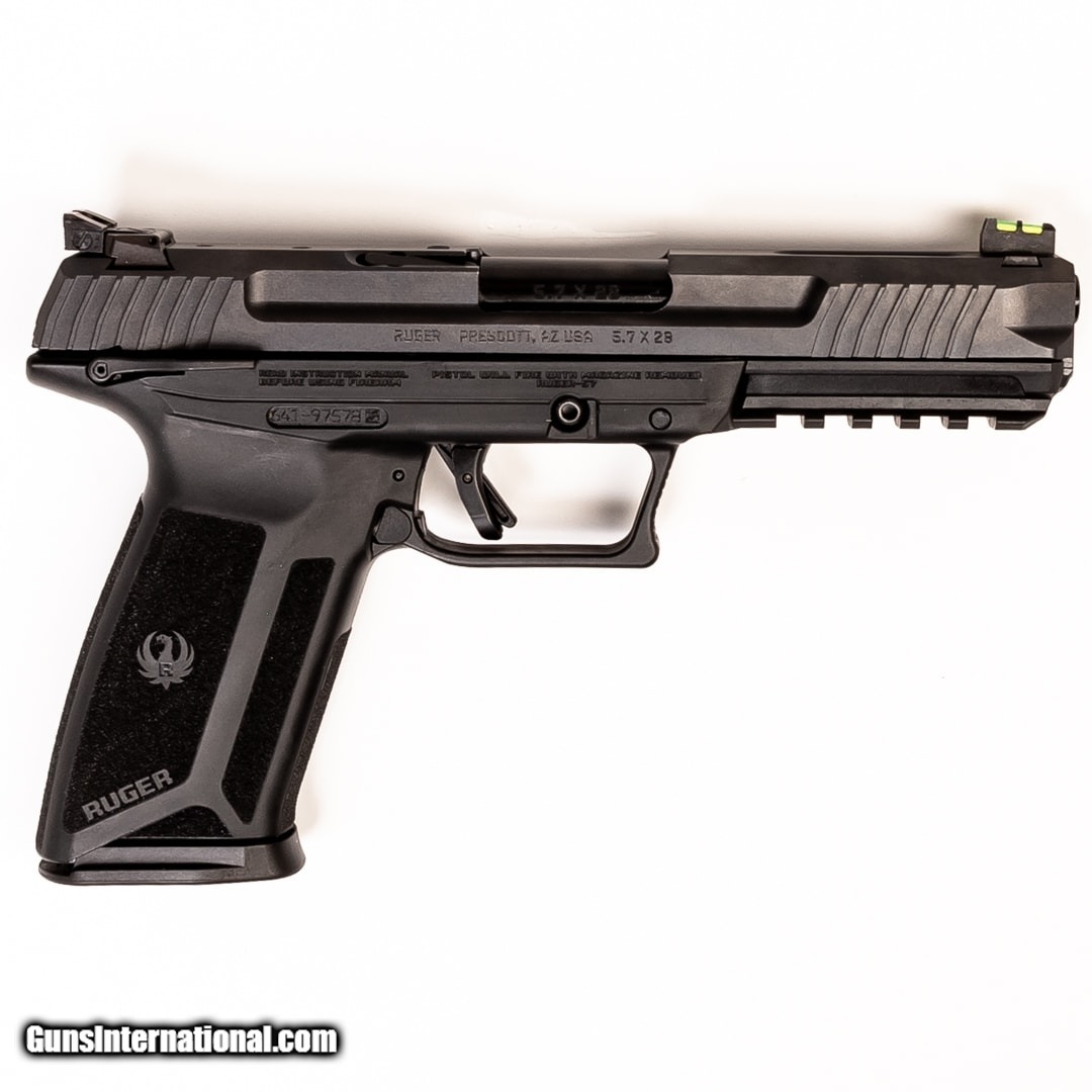 Description: Guns Listing ID: 426936 Chambered in the high-velocity 5.7X28mm cartridge, this Ruger 57 is an excellent self-defense sidearm that packs immense firepower with minimal recoil. It features a 1911 ambi safety, a reversible magazine release, highly textured ergonomic frame, and a picatinny accessory rail. Ruger‚‚s are all proudly made in America and are built to last. Included with this purchase are two 20-round magazines SOLD Manufacturer: RUGER Model: 57 Caliber Info: 5.7X28MM Condition: Used - Certified Barrels: 4.9 BARREL Finish: BLACK |