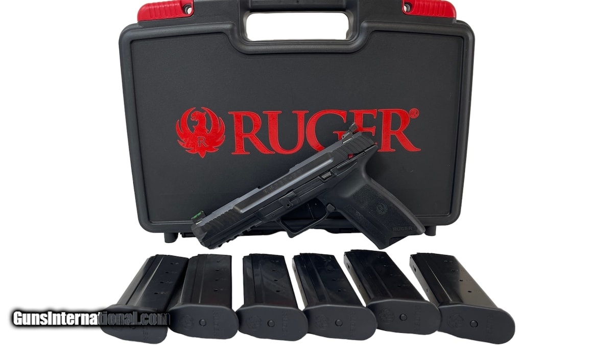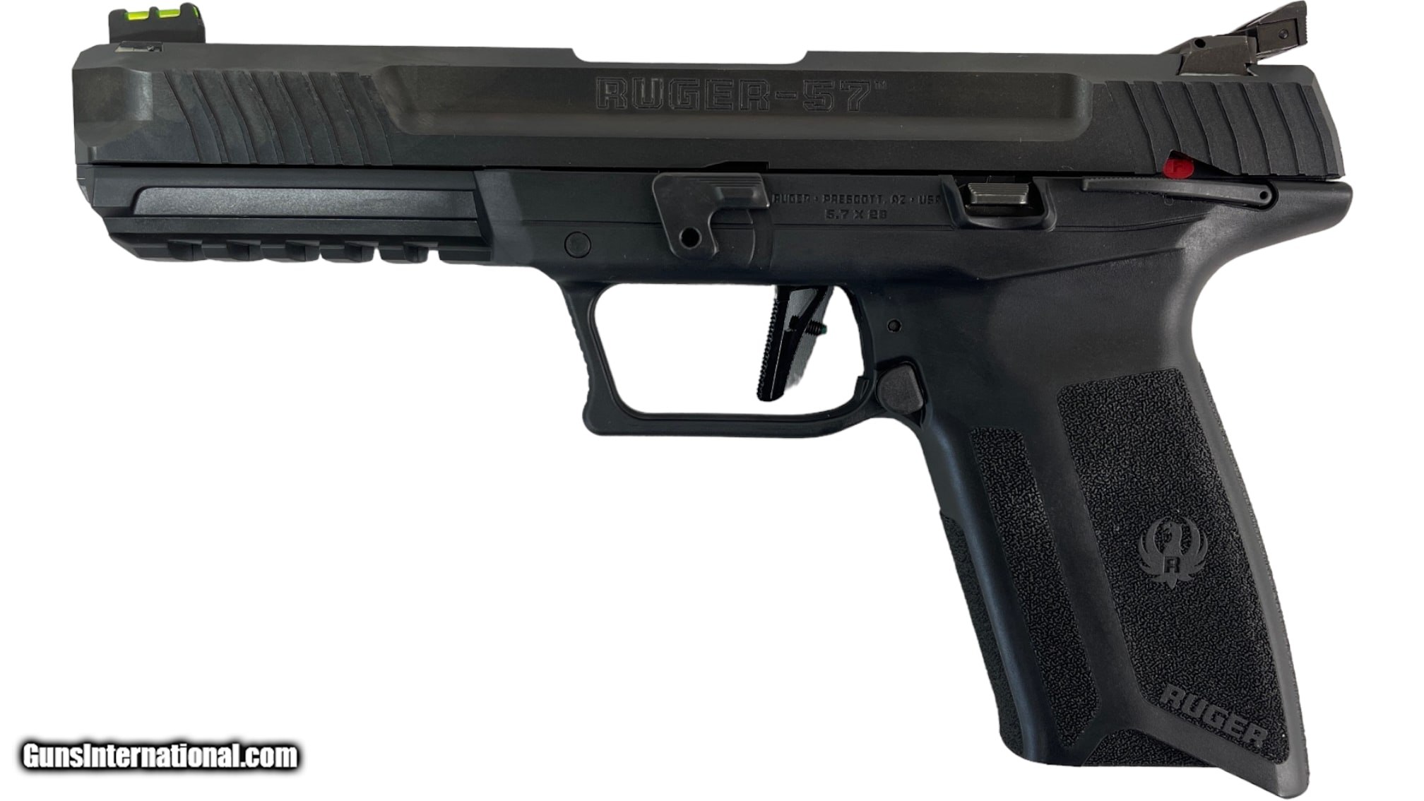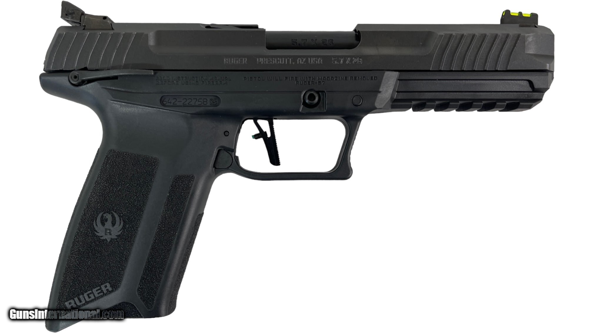 Description: Guns Listing ID: 771715 This listing is for a used Ruger model 57 semi-auto pistol chambered in 5.7x28. Pistol has a 4.94\" barrel, 20rd magazine capacity, black finish, thumb safety, front pic rails for attachments, drilled and tapped slide (factory) for an optic plate attachment, rear U sight and a front Fiber optic sight (green). Overall pistol is in good condition with little sign of use/wear. Bore is bright and sharp. Listing includes original box/case and 6x 20rd magazines. SOLD Manufacturer: RUGER Model: 57 Caliber Info: 5.7X28MM Condition: Used - Non-Certified Barrels: 4.94 BARREL Finish: BLUED |