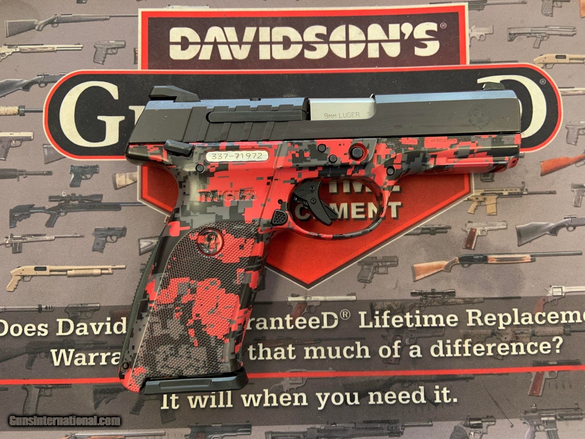 Description: Guns Listing ID: 486110 Red and black digital camo color, comes with original box and has a red and black soft case as well. Does only come with one magazine. SOLD Manufacturer: RUGER Model: 9E Caliber Info: 9MM LUGER (9X19 PARA) Condition: Used - Non-Certified Barrels: 4.1 BARREL |