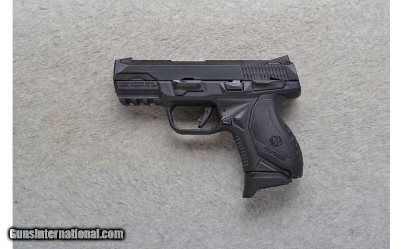 Description: This Ruger Model American is a right hand semi-auto pistol in 9mm Cal. It has a 3.5 inch barrel with a rear serrated slide. A blade front sight and notch rear sight with 3 white sight dots. The grip is a textured black polymer. It has a lower accessory rail, ambidextrous safety and ambidextrous magazine release. 9mm Parabellum SOLD Chambers: 12 round magazine. Metal Condition: Excellent. Bore Condition: Excellent. Barrels: 3.5 inch barrel with a rear serrated slide. Weight: 28 oz. Sights: Blade front. Notch rear. 3 white sight dots. Item Location: Richfield, WI |