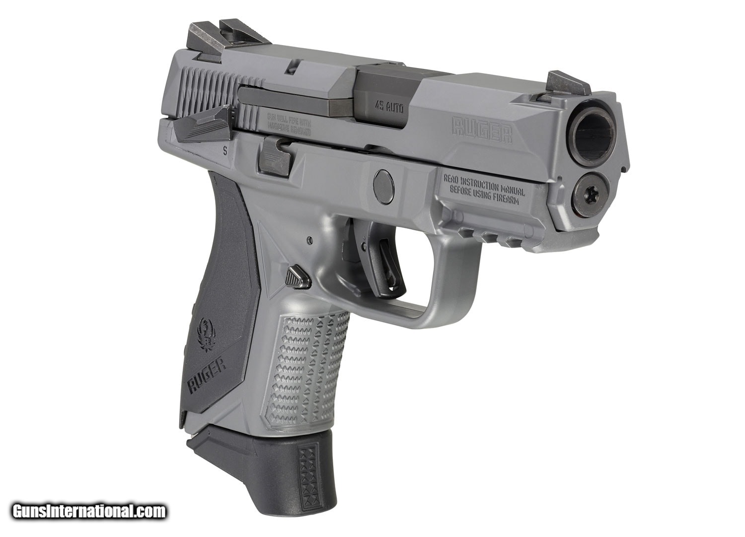 Description: Guns Listing ID: 48388 The Ruger American Pistol has a recoil-reducing barrel cam, low-mass slide, low center of gravity and low bore axis. The pre-tensioned striker system features a powerful striker spring for positive ignition without a heavier trigger pull. Its non-slip surfaces include functional slide serrations and grip/frame texturing for enhanced control. The American Pistol features a modular wraparound grip for adjusting palm swell and trigger reach to fit a wide range of hand sizes. Ergonomic grip modules lock in solidly and do not loosen. It has an ambidextrous slide stop and magazine release, Novak LoMount carry three-dot sights, MIL-STD-1913 Picatinny rail. Safety features include internal, automatic sear block system and integrated trigger safety. Includes three nickel-Teflon plated 7-round steel magazines; small, medium and large grip modules. SOLD Manufacturer: RUGER Model: AMERICAN Caliber Info: .45 ACP Condition: new Barrels: 3.75 barrel Finish: GRAY |