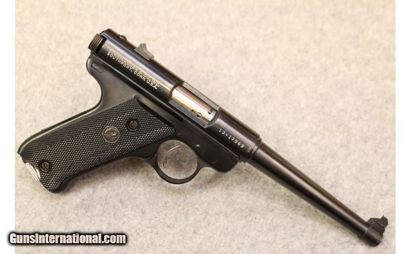 Description: This Ruger Automatic Pistol chambered in .22 LR features, steel construction with a blue finish, six inch barrel, and replaceable fixed sights. .22 Long Rifle SOLD Metal Condition: Excellent Bore Condition: Bright Barrels: 6 inch Weight: 2.2 lbs. Item Location: Hoffman Estates, IL |