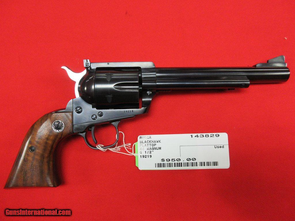 Description: Ruger "Flat Top" Blackhawk 44 Magnum 6 1/2" -- FLATTOP CYLINDER STRAP, ADJUSTABLE SIGHTS, WALNUT GRIPS, EXCELLENT CONDITION. SOLD |
