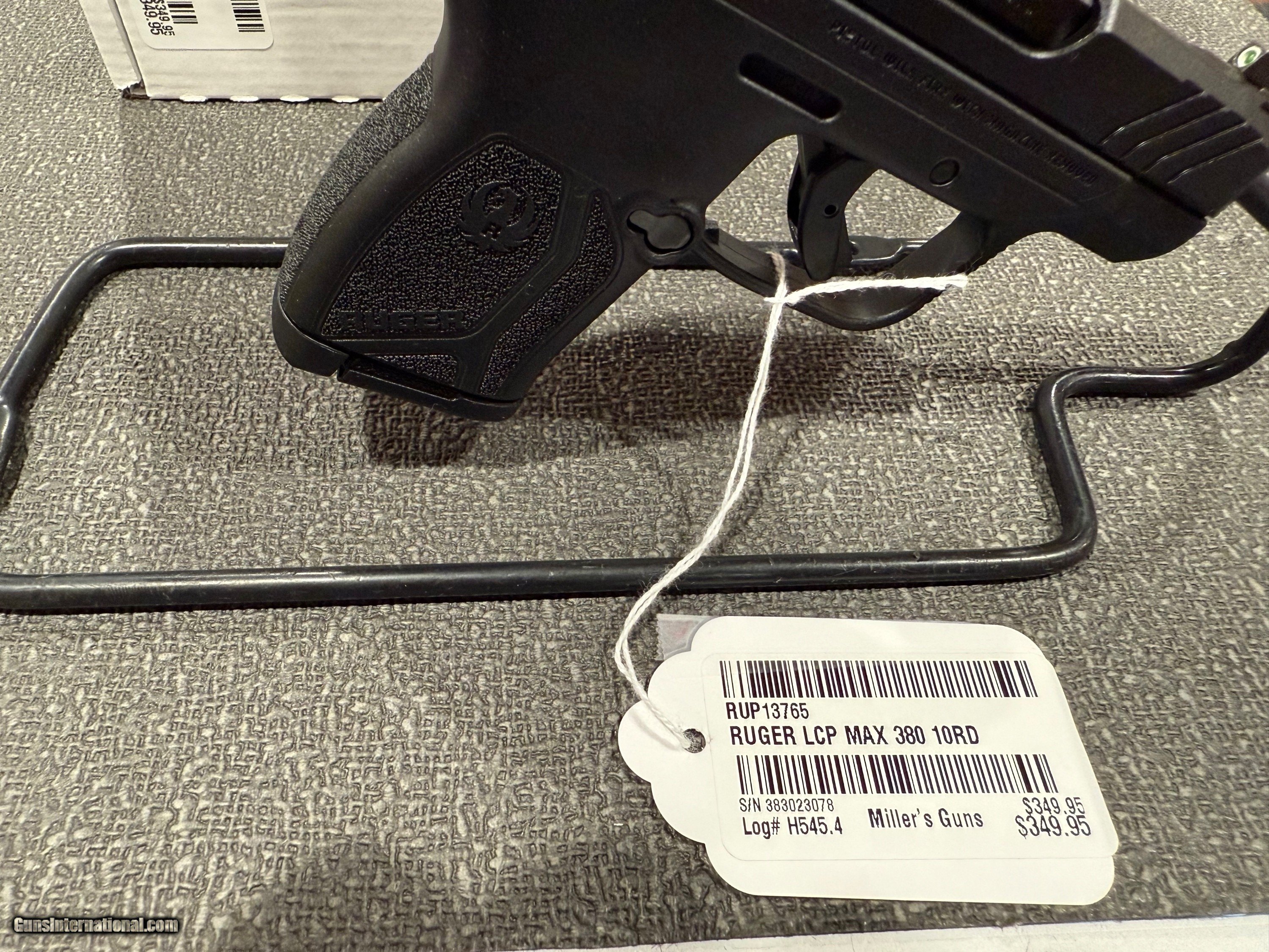 Description: Ruger LCP MAX .380acp 10 round capacity (1) magazine included Handgun Caliber: .380 ACP (9x17mm Browning Short) Manufacturer: Ruger Model: LCP MAX Serial Number: 383023078 Barrel Length: 2.80 Condition: NEW Price: $349.95 Contact Seller |