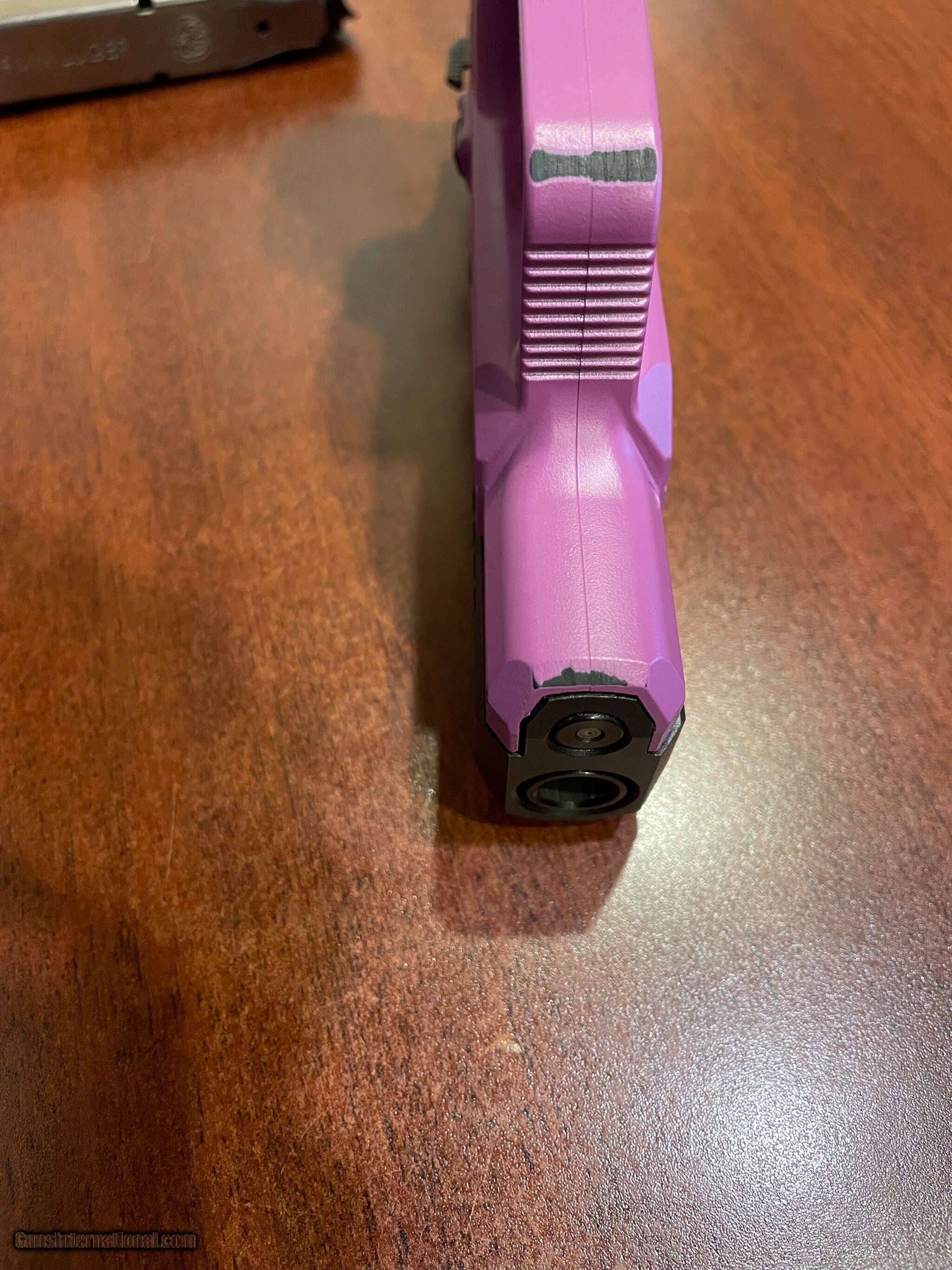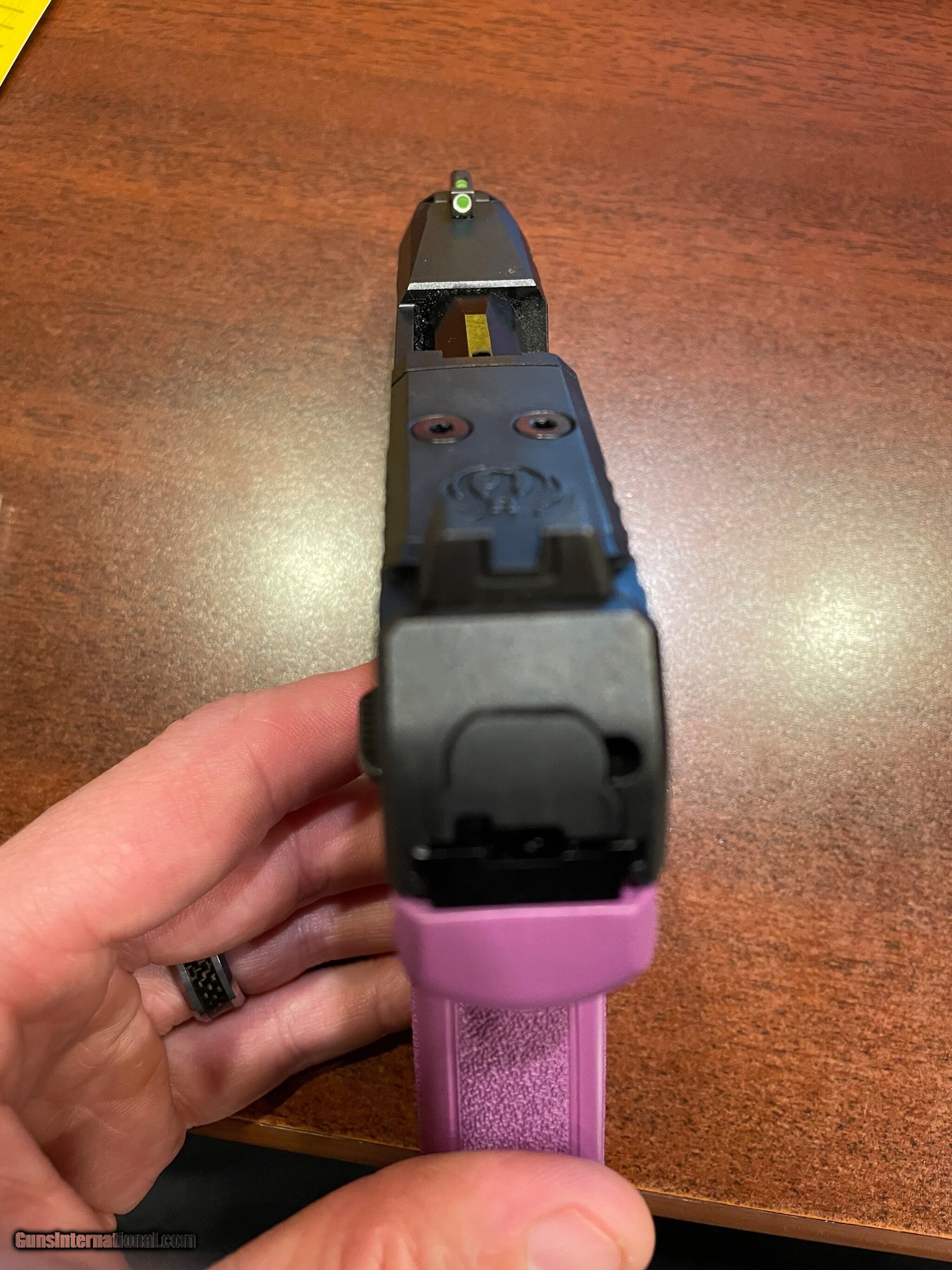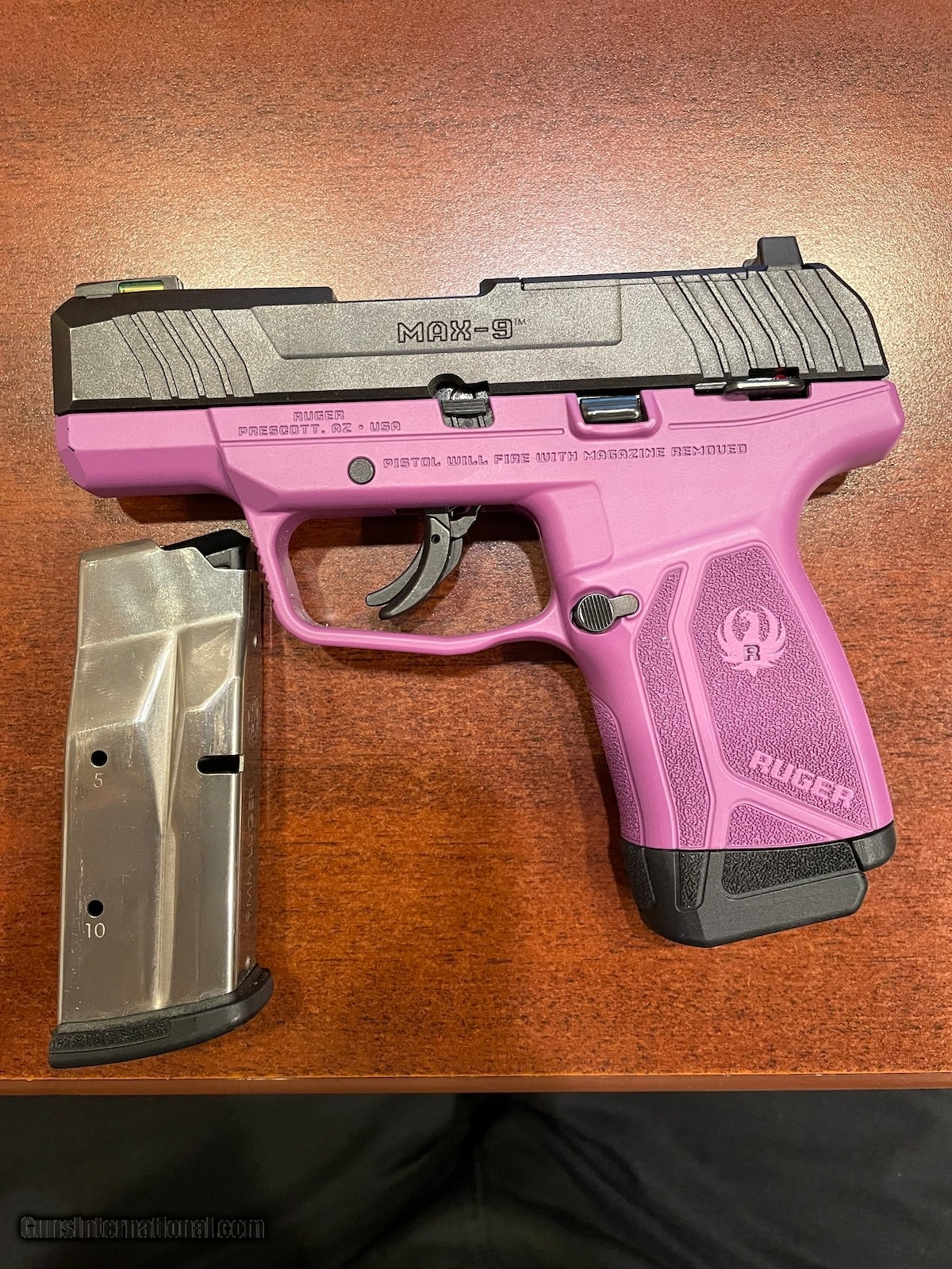 Description: Guns Listing ID: 908953 Used TALO Exclusive Ruger Max 9. It’s optic ready and has a tritium/fiber optic front sight. Comes with 2-12rd magazines one has an extended baseplate. No box included. Has holster wear on the end of the frame and the trigger guard. SOLD Manufacturer: RUGER Model: MAX-9 Caliber Info: 9MM LUGER (9X19 PARA) Condition: Used - Non-Certified Barrels: 3.2 BARREL Finish: PURPLE/BLACK |