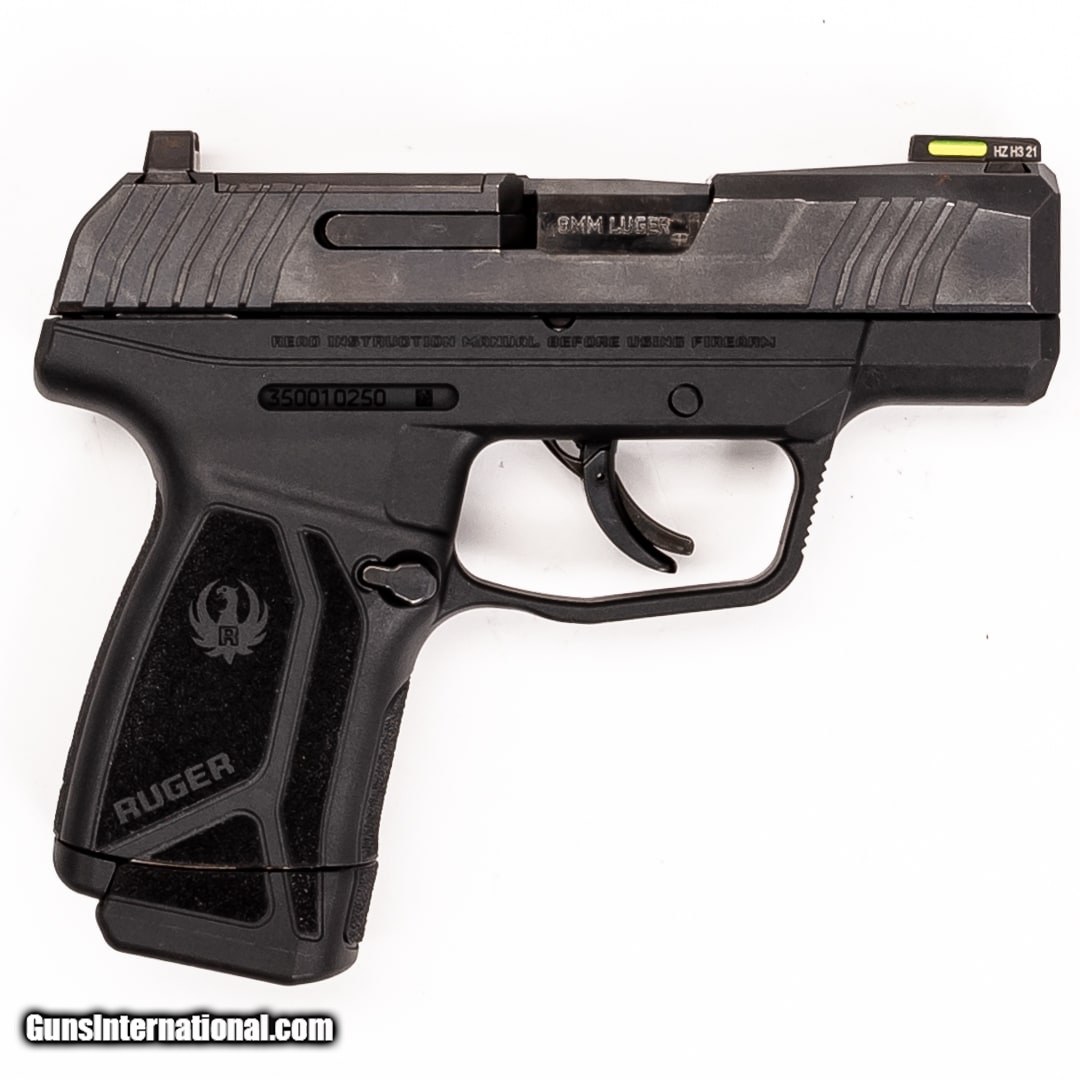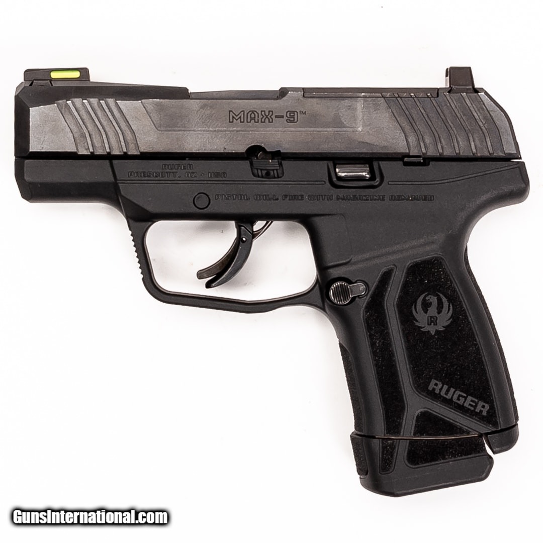 Description: Guns Listing ID: 335979 This compact Ruger Max-9 is a semi-automatic 9mm pistol that\"s slim, lightweight, and well-suited for personal protection. It offers rugged construction with a precision-machined fire control chassis, through-hardened alloy steel slide, cold hammer-forged alloy steel barrel, and a high-performance, glass-filled nylon grip frame. This Max-9 is in very good condition and comes with the original box and two 10-round magazines. SOLD Manufacturer: RUGER Model: MAX-9 Caliber Info: 9MM LUGER Condition: Used - Certified Barrels: 32 BARREL Finish: BLACK |