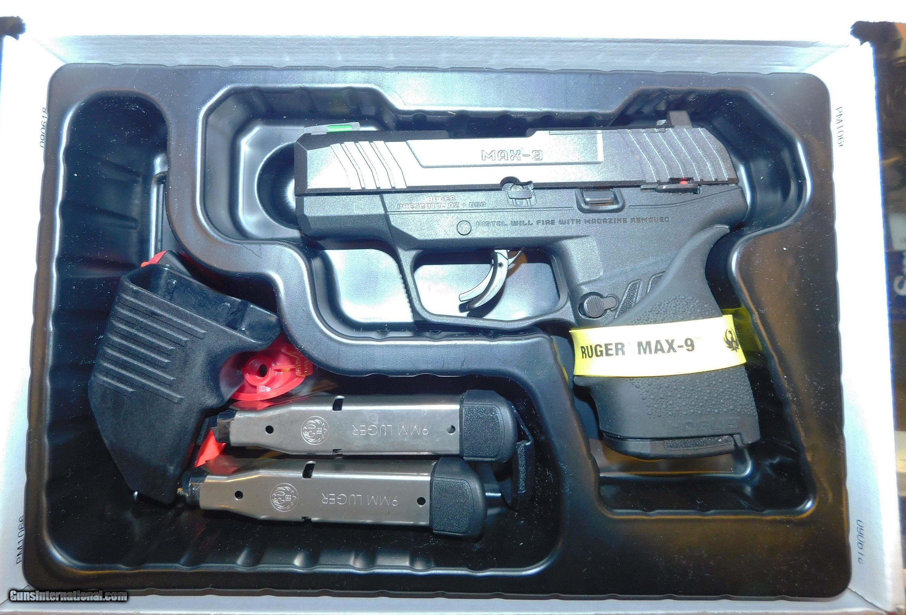 Description: RUGER MAX 9 IN 9MM CAL., WITH 3 .5" BARREL. COLOR BLACK. CONDITION 98%. SERIAL NUMBER 350087443. RUGER MODEL MAX 9 (OPTICS READY) IN 9MM CALIBER, MIRROR BORE, GRIPS EXCELLENT, COMES WITH THREE FACTORY MAGAZINES, HARD CASE, 98% OVERALL CONDITION, OUR STOCK # D5718 SOLD |