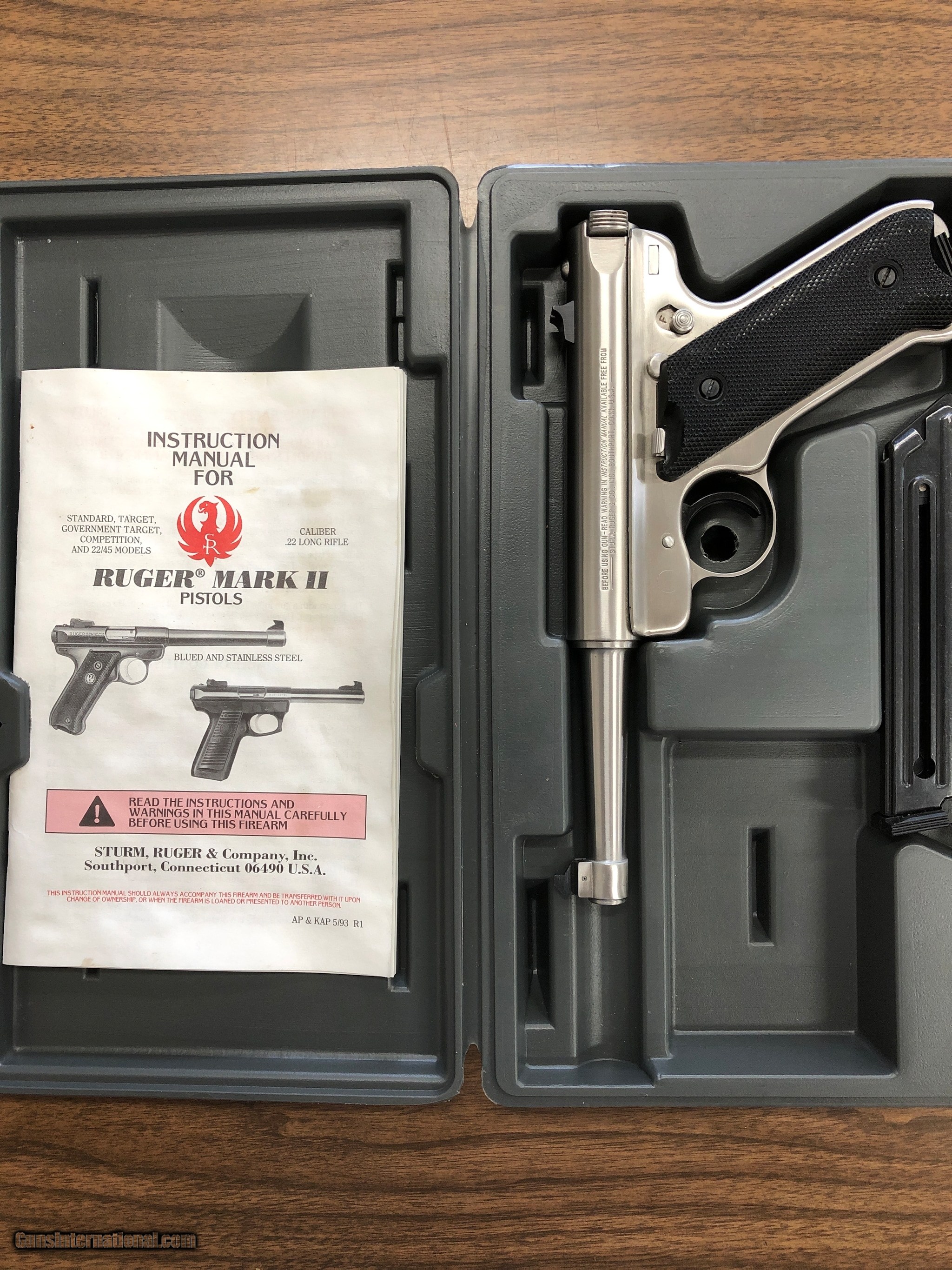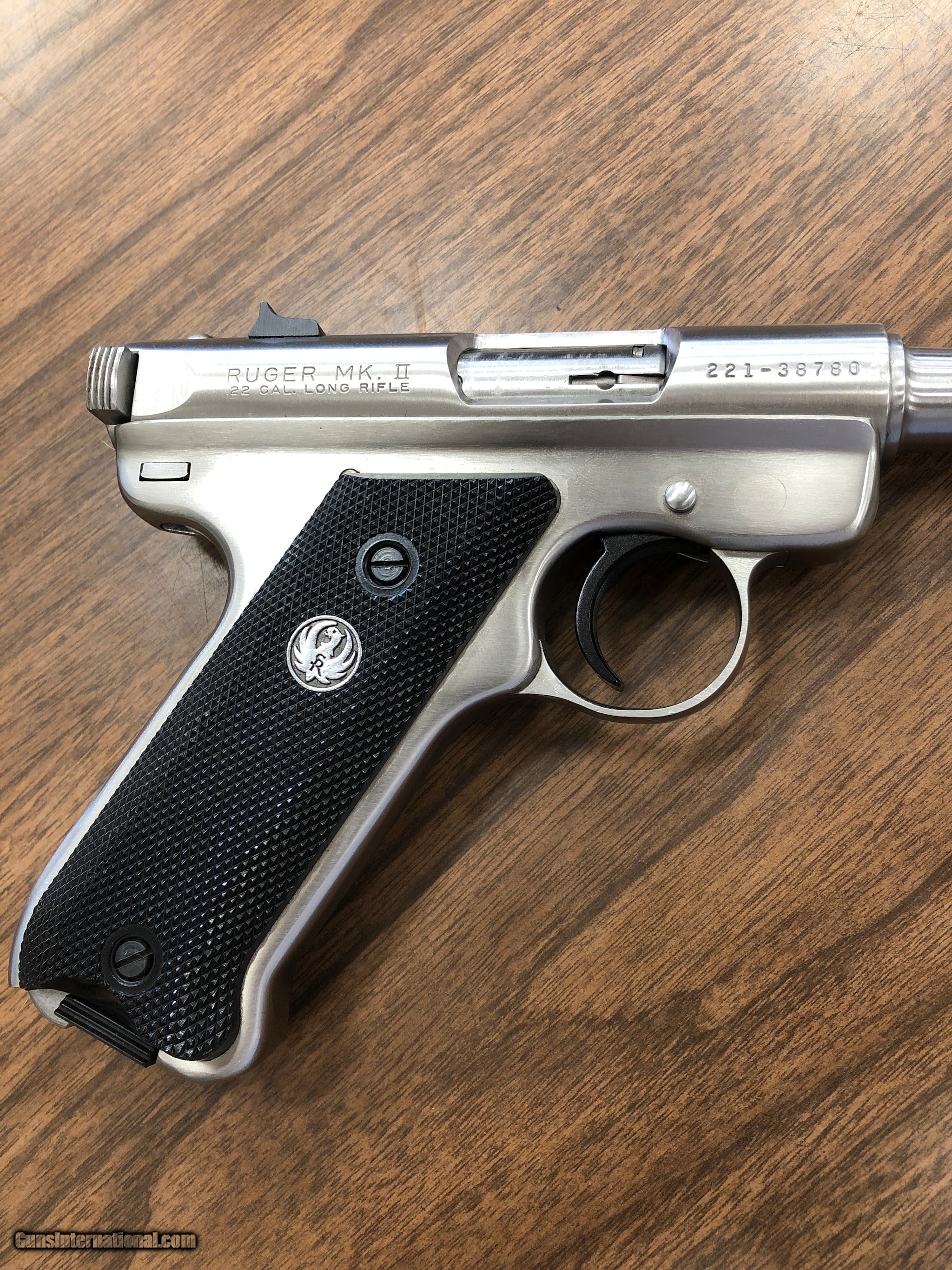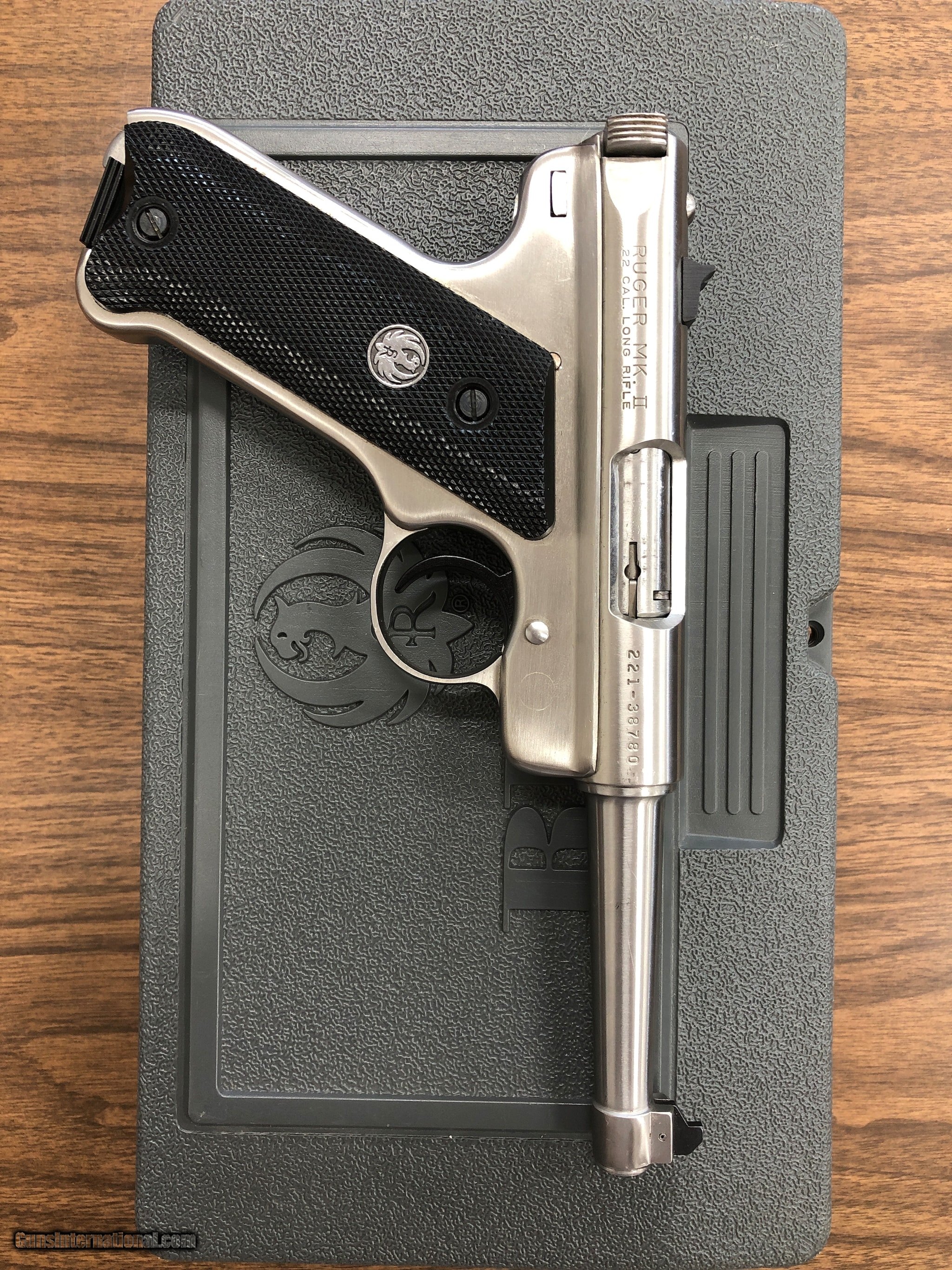 Description: Guns Listing ID: 305886 Light wear. Comes with ruger hard box and extra magazine SOLD Manufacturer: RUGER Model: MK II Caliber Info: 22 LR Condition: used Barrels: 4.75 BARREL Finish: STAINLESS |