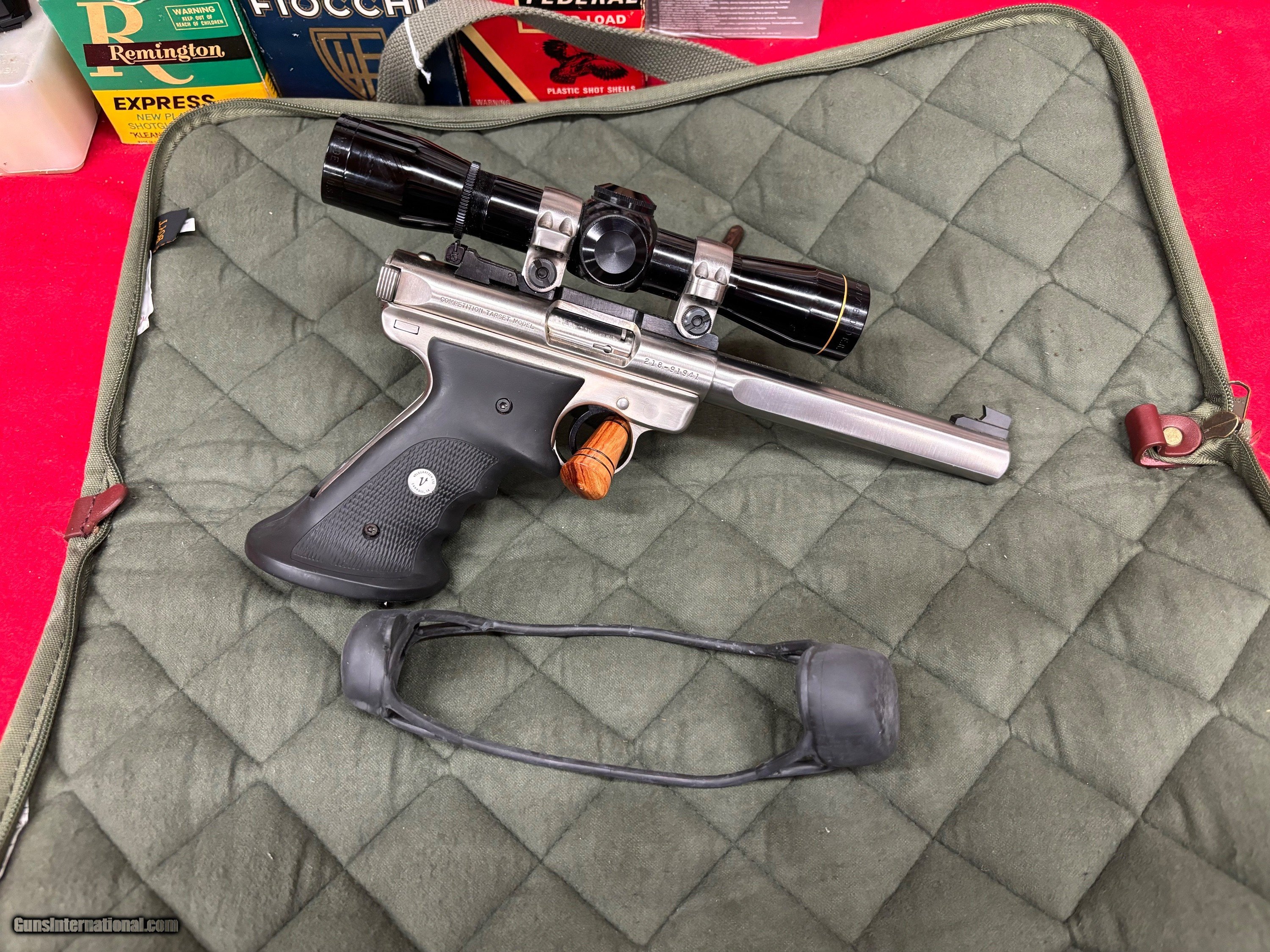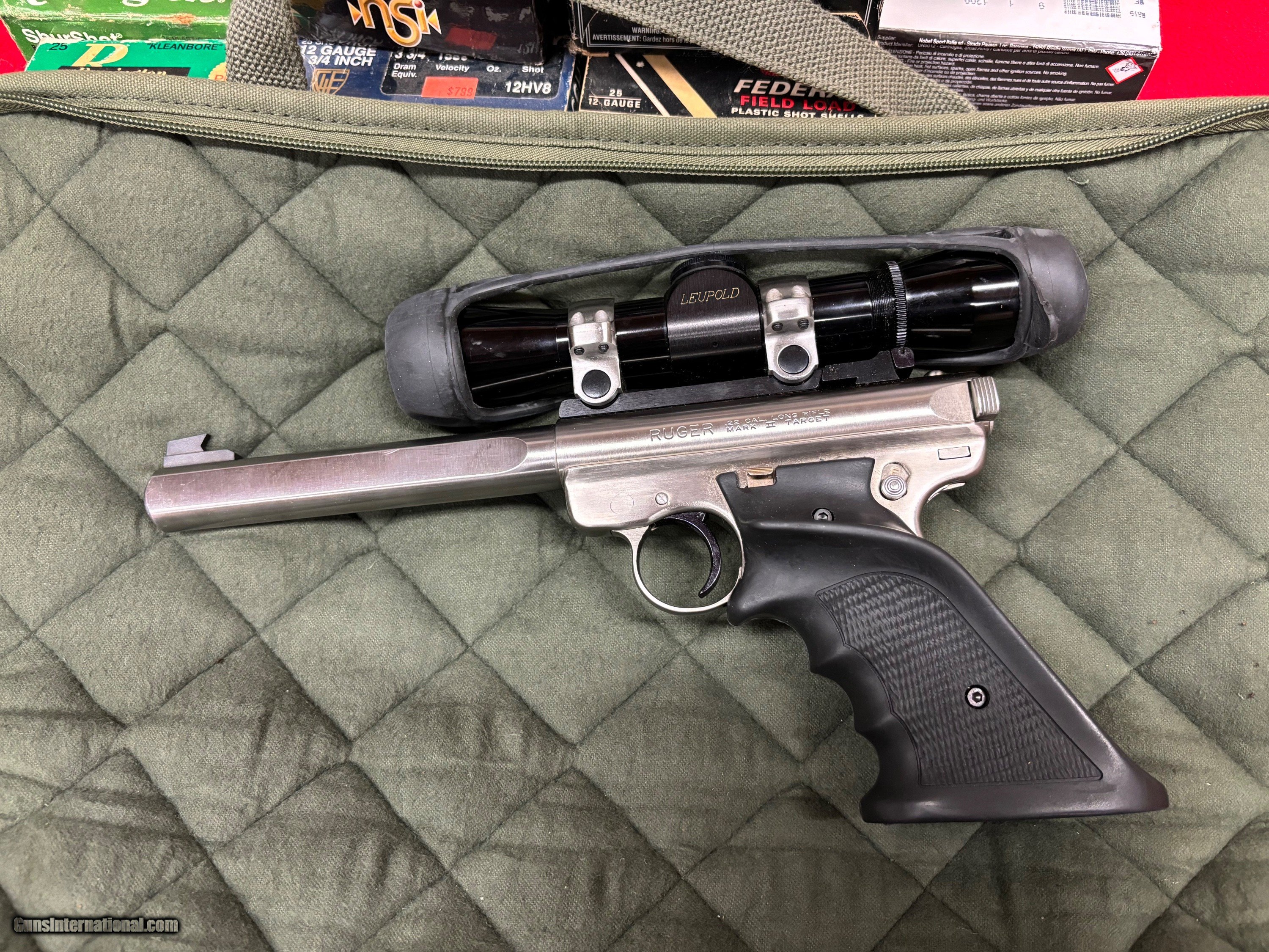 Description: Ruger MKII Competition Target WHAT A JEWEL.......THE PERFECT SET UP!!!!!! HIT THE RANGE OR VARMINTS. Gun is as new. Slab side.....7 inch MKII AND Leupold M8 4x extended eye relief. Scope covers and super nice zipper case. $695.00 $35.00 to ship If you are WEST of the Mississippi shipping will be $10.00 extra Thank you for looking at our items. If it is listed on the site, we still have it in the shop. If you wish to buy, hit buy it now and call the shop to pay. We are open Monday thru Friday 10:00am-5:00pm EST ...........Ask for Bree....... (803) 874-1060. Please CALL the shop first if you are in California. You need to verify you can have this weapon, since we DO NOT accept returns from California. THERE IS A 3.5% CARD FEE. NO INTERNATIONAL SALES. SOLD Handgun Caliber: .22 Long Rifle |