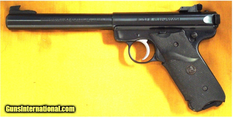 Description: RUGER model MKII GOVERNMENT TARGET MODEL in .22 LR CAL., with 6 1/2" barrel. Color BLUE. THIS MKII IS IN EXC. OVERALL CONDITION RETAINING 98% FACTORY ORIGINAL BLUE AND LOOKS ABOUT NEW, BULL BARREL, ADJUSTABUL REAR TARGET SIGHTS, REPLACEMENT TARGET GRIPS. Condition 98%. SOLD |
